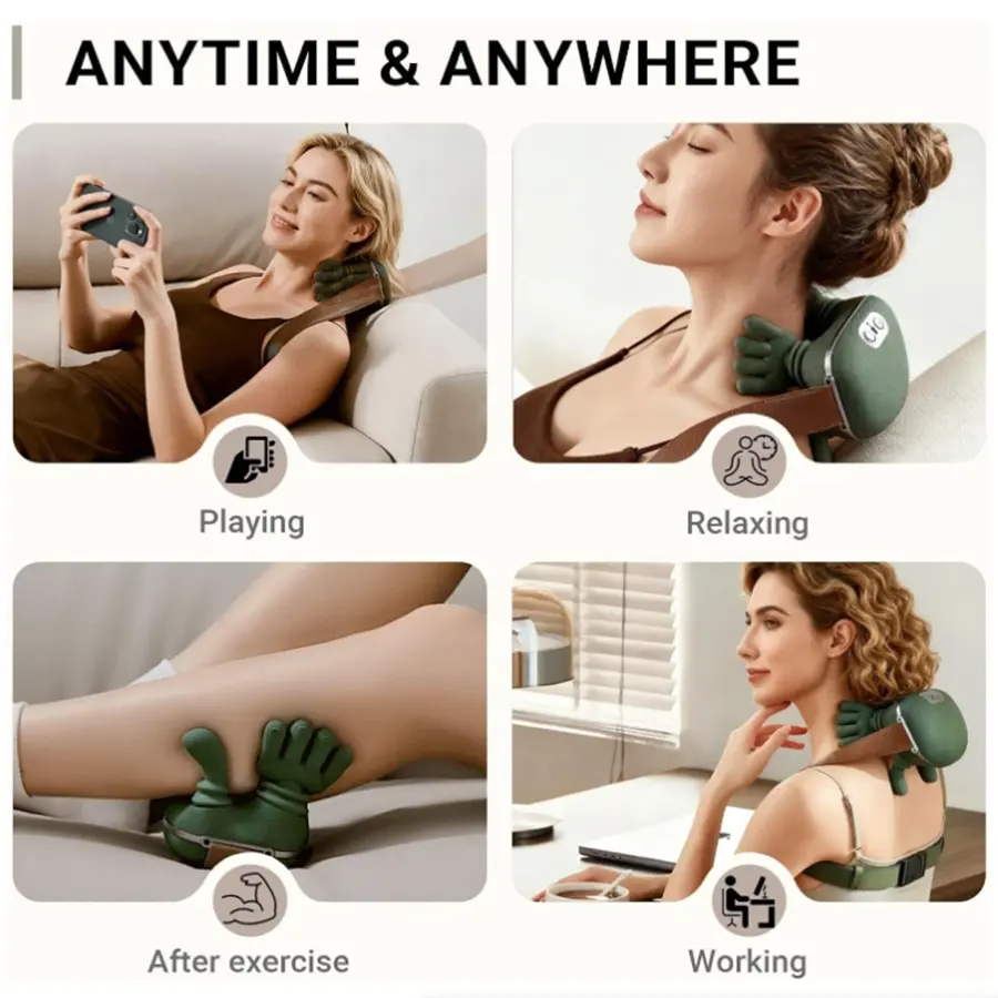 Compact and portable, it works on your neck, back, abdomen, and legs—one device for full-body massage! No more expensive spa visits; enjoy professional relaxation at home, in the office, or in the car, anytime, anywhere.