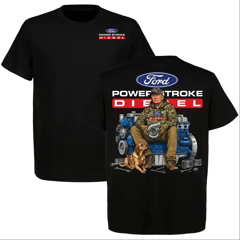 5. 2026 Trump with Ford Powerstroke Diesel Graphic T-shirt, Diesel Power Shirt, Perfect For Diesel Truck Enthusiast