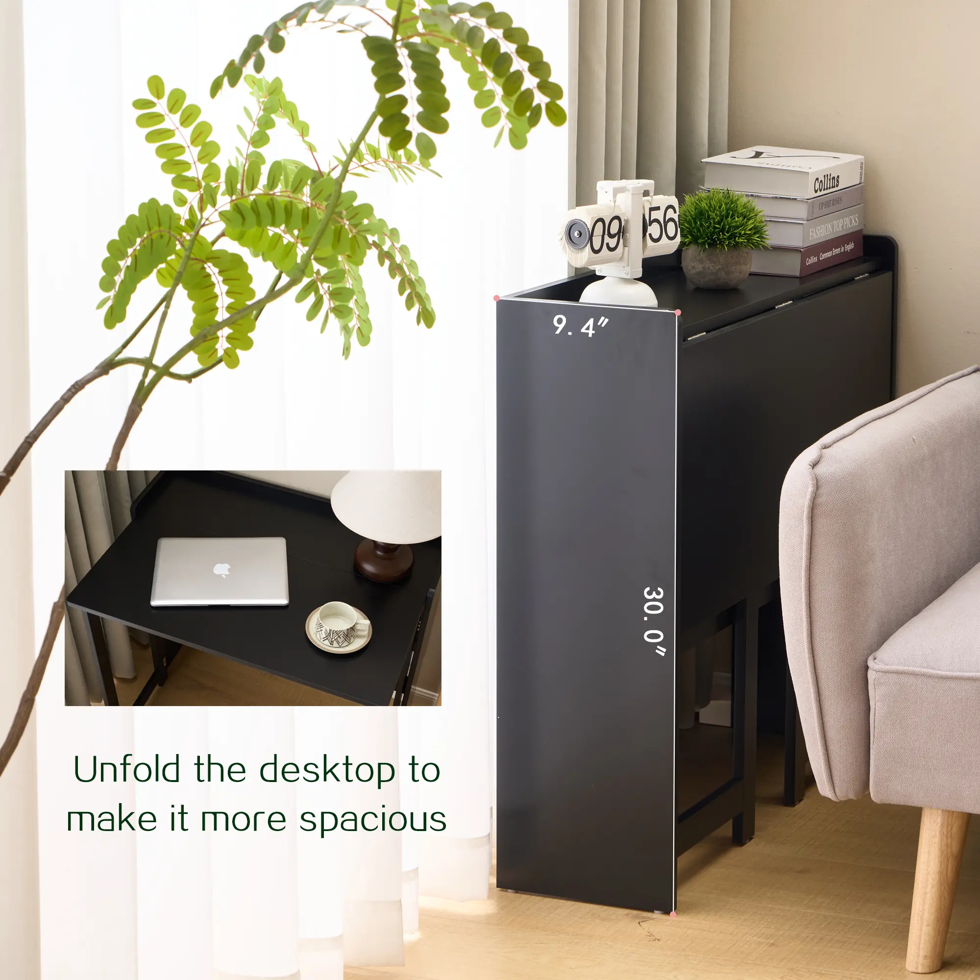 This 32.6-inch foldable desk is perfect for small spaces. It fits seamlessly in apartments, bedrooms, dorms, or home offices. When folded, it's just 9.4" thick, making it easy to store beside a wall, sofa, or in narrow gaps. Its space-saving design ensures you maximize your limited space without compromising functionality.