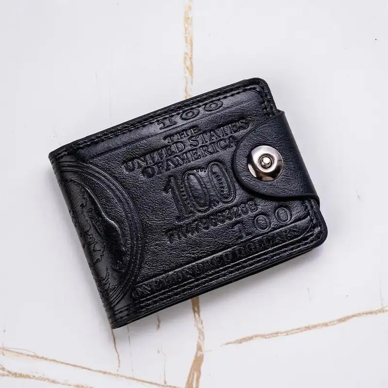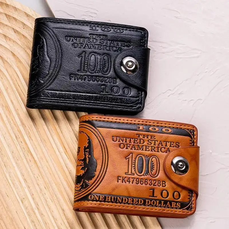 Retro Banknote Design Wallet, Unisex Slim Snap-Closure Coin Purse with Multiple Card Slots, Black & Brown Durable for Everyday Use
