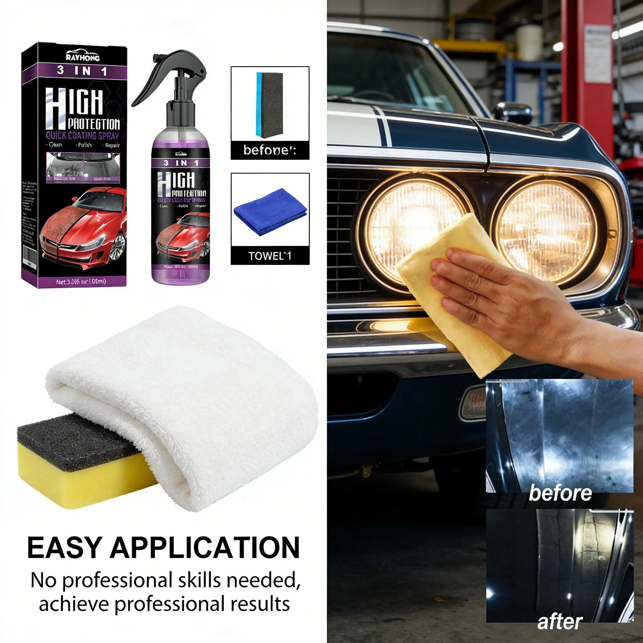Rayhong coating agent three in one (purple) for oil removal, polishing, protection, repair of scratches, car paint cleaning, maintenance, and coating