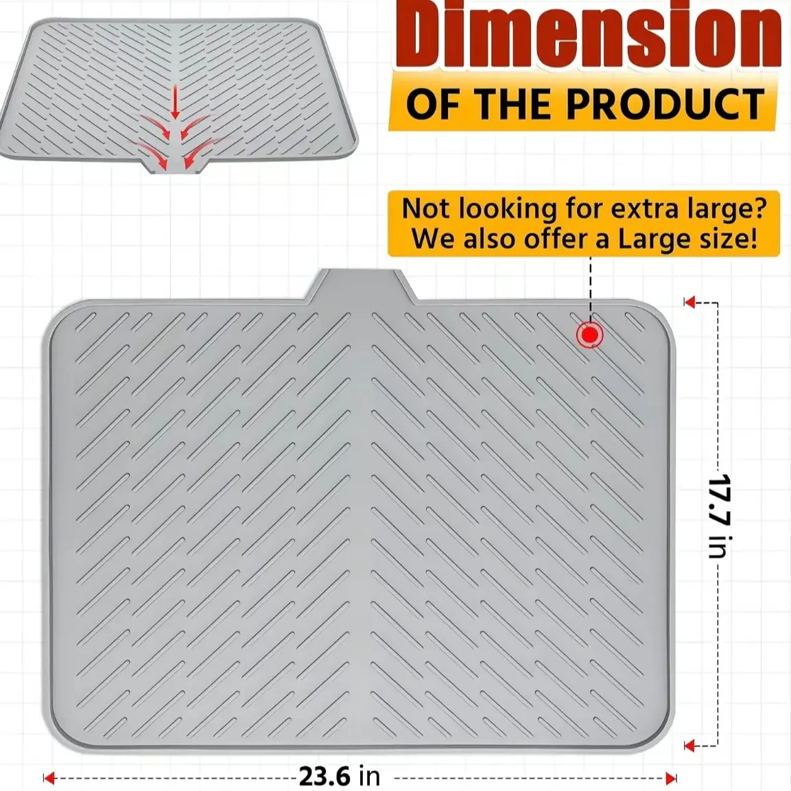 X-LARGE AND COMPACT: The Luxet Dish Drying Matmeasures 23.6 x 17..7 inch size (measure your space so youget an accurate idea of the size), providing a convenientspot to place washed dishes, glasses, silverware, pots andpans for air drying without taking up an excessive amountof space on your countertop.