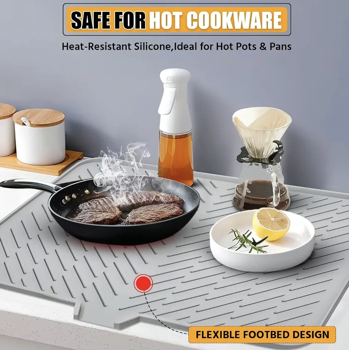 HIGH-QUALITY CONSTRUCTION: Expertly crafted offlexible silicone to provide long- lasting strength, thisdurable mat is resistant to heat and water to ensure itstands up to everyday kitchen use.