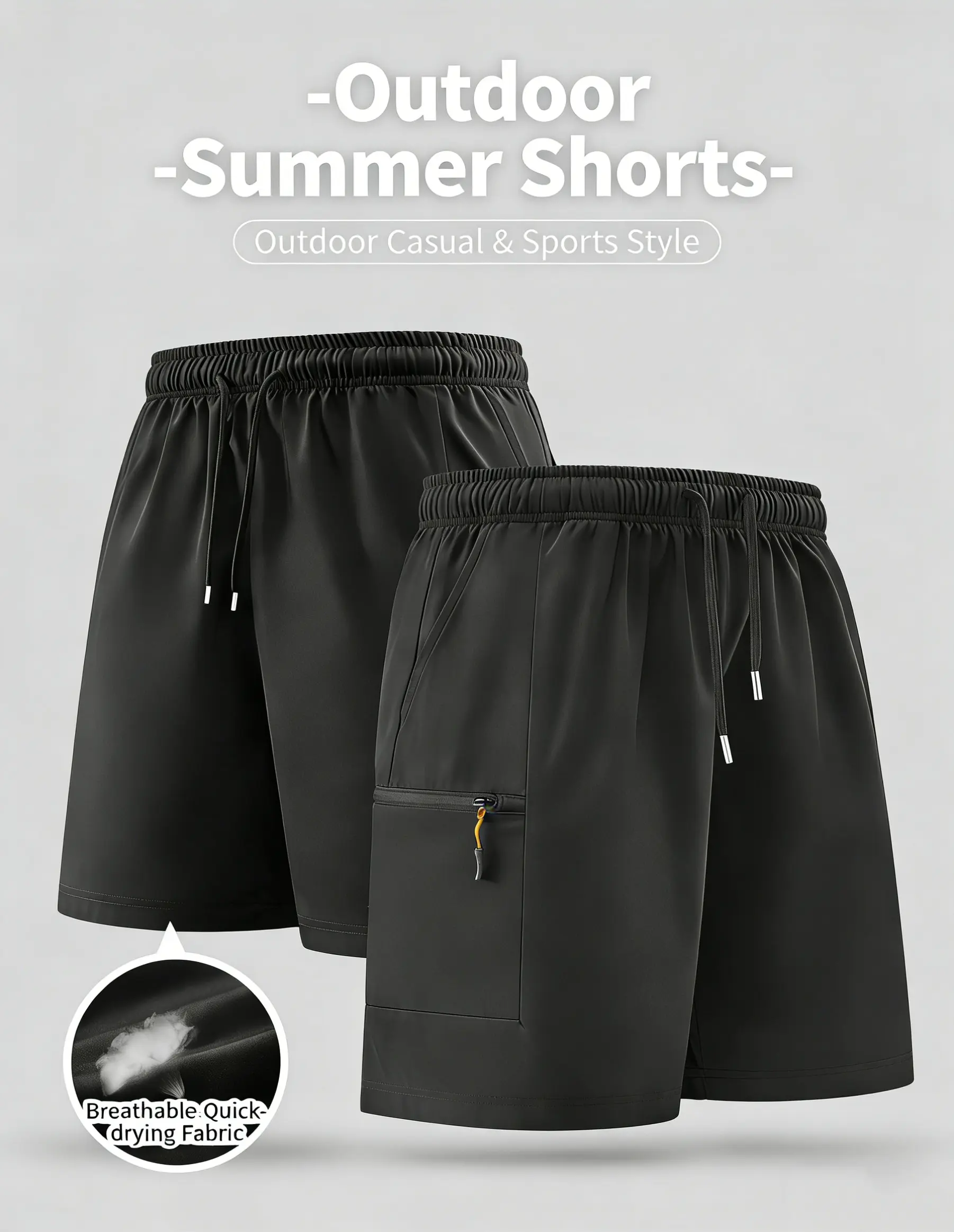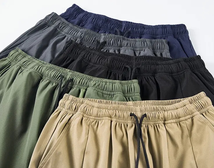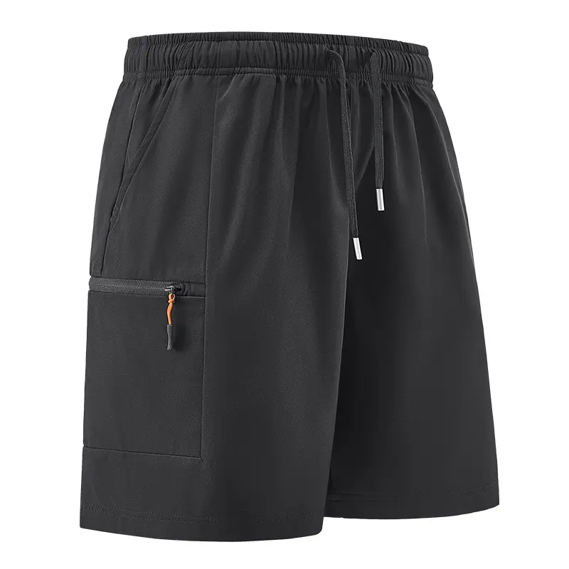 Men’s athletic shorts—comfortable, soft, warm, breathable casual mid-length shorts available in multiple colors, featuring zippered pockets and a drawstring design, made from slightly stretchy fabric, suitable for summer outdoor sports and fitness activit