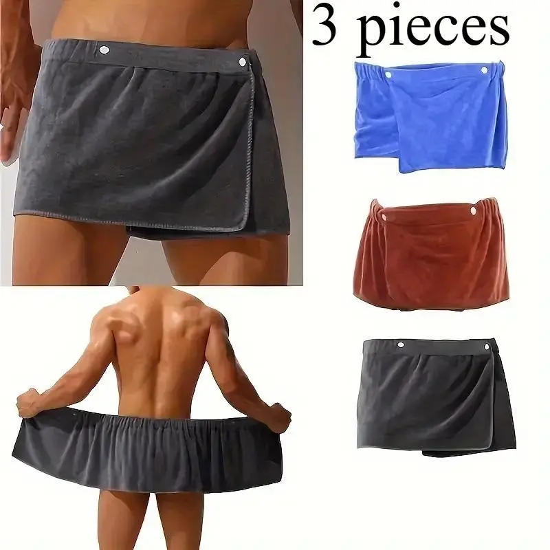 3pcs Men's Soft Microfiber Wrap-Around Bath Towel Shorts, Solid Color Wearable Towels for Fitness, Spa, Bath, Swimming, Beach & Camping, Perfect New Year Gift