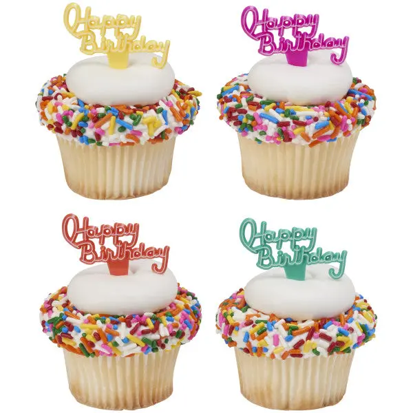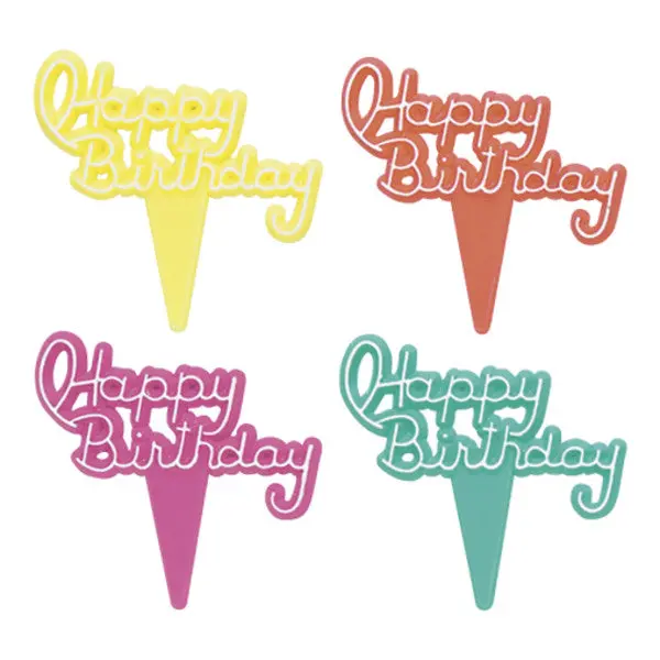 Make birthdays colorful with these script Happy Birthday DecoPics! Assorted colors of yellow, pink, orange, and teal. Great for cake and cupcakes to add to an overall theme.
