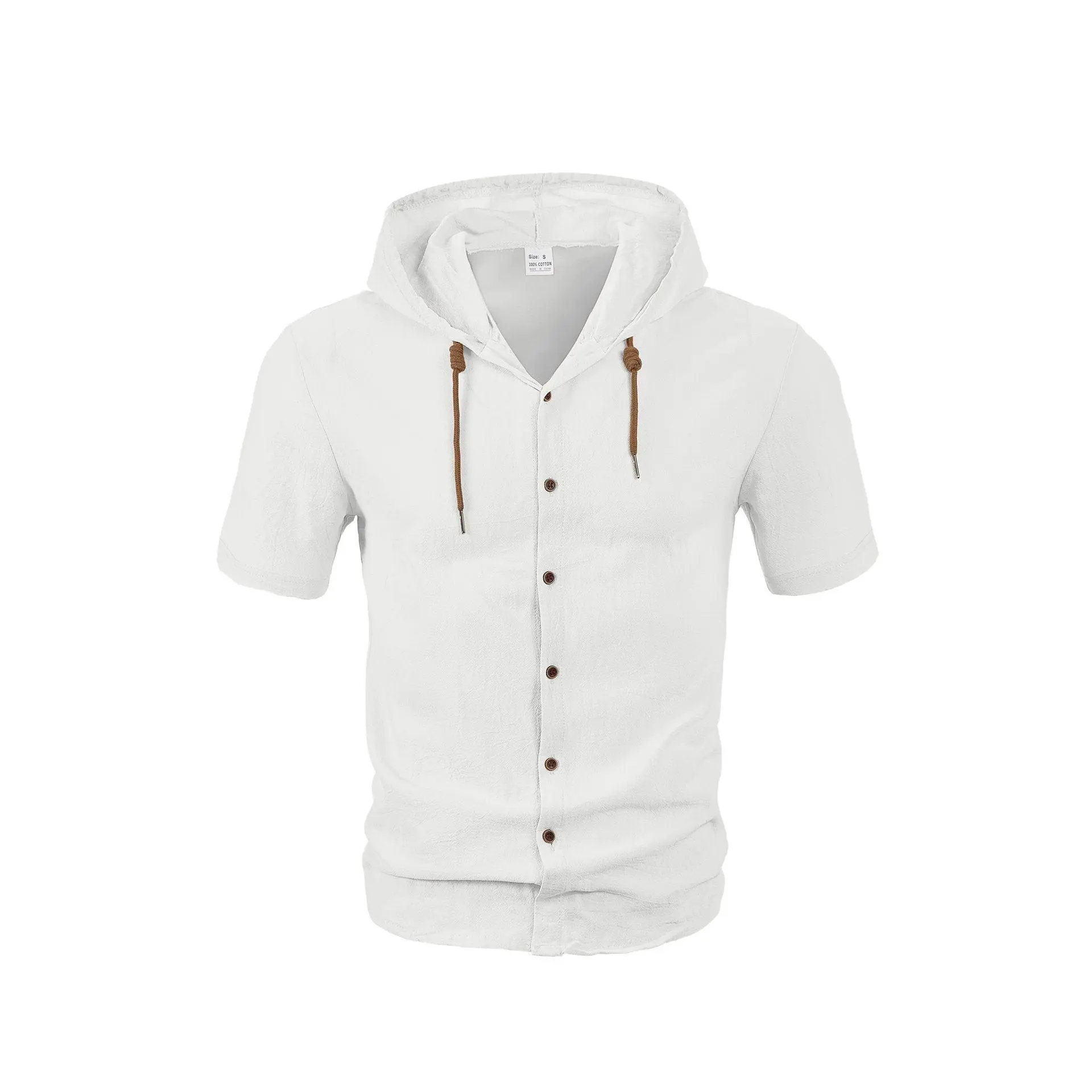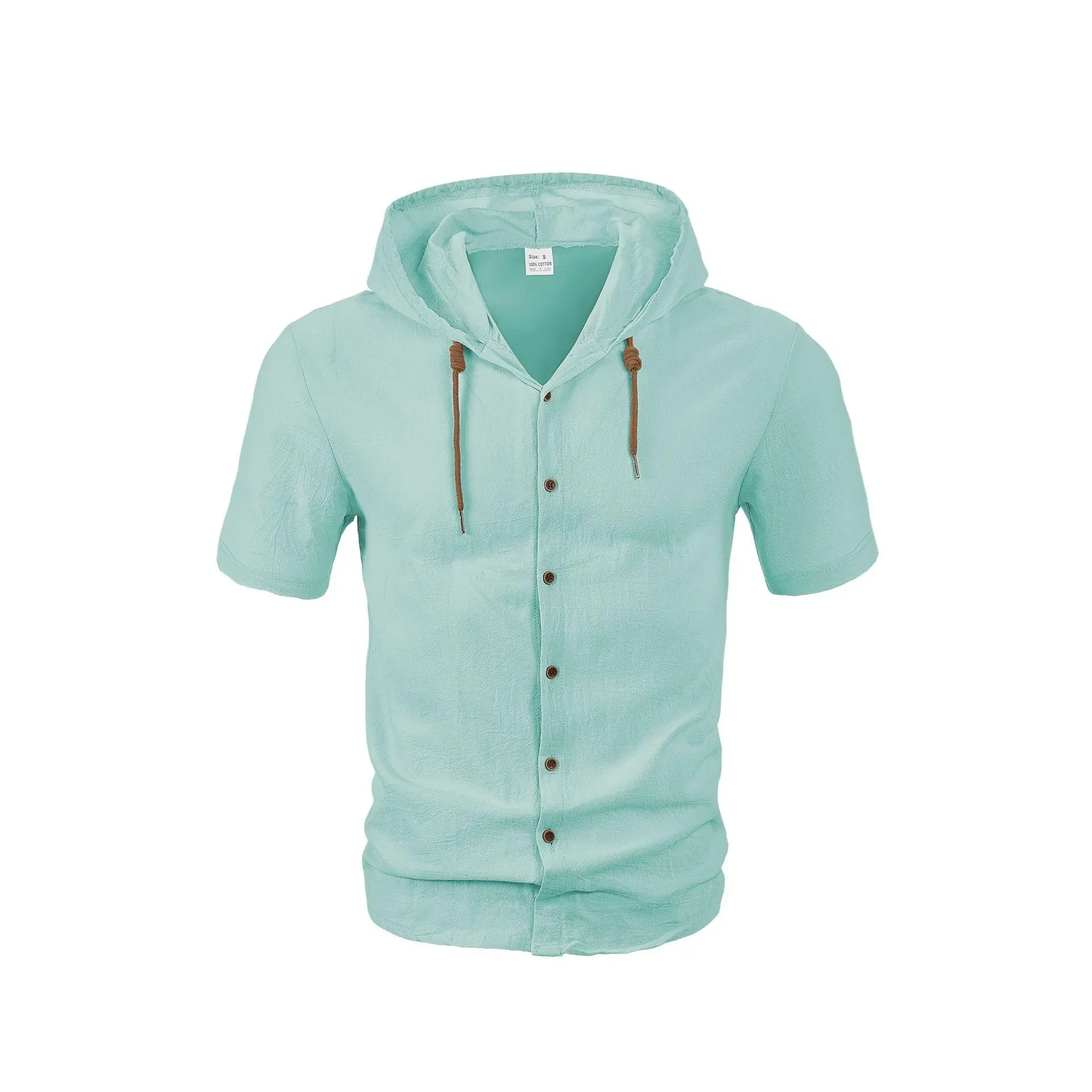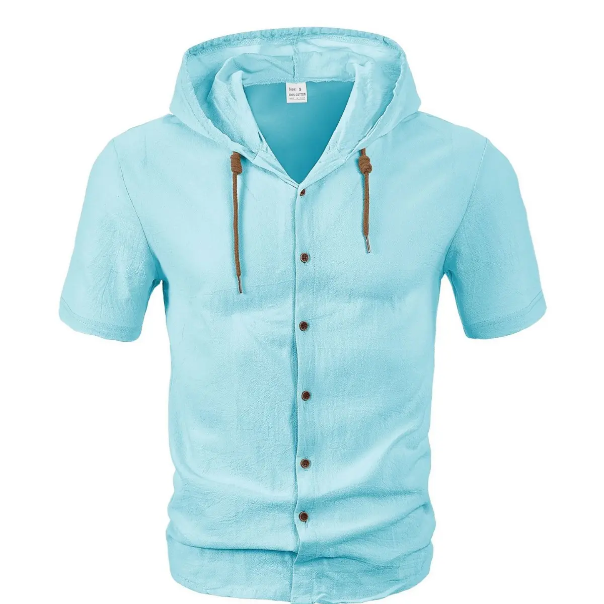 American-style Summer Lightweight Breathable Linen Amekaji Loose-fitting Hooded Men's Short-sleeve Shirt 95% Linen 5% Polyester Casual Menswear
