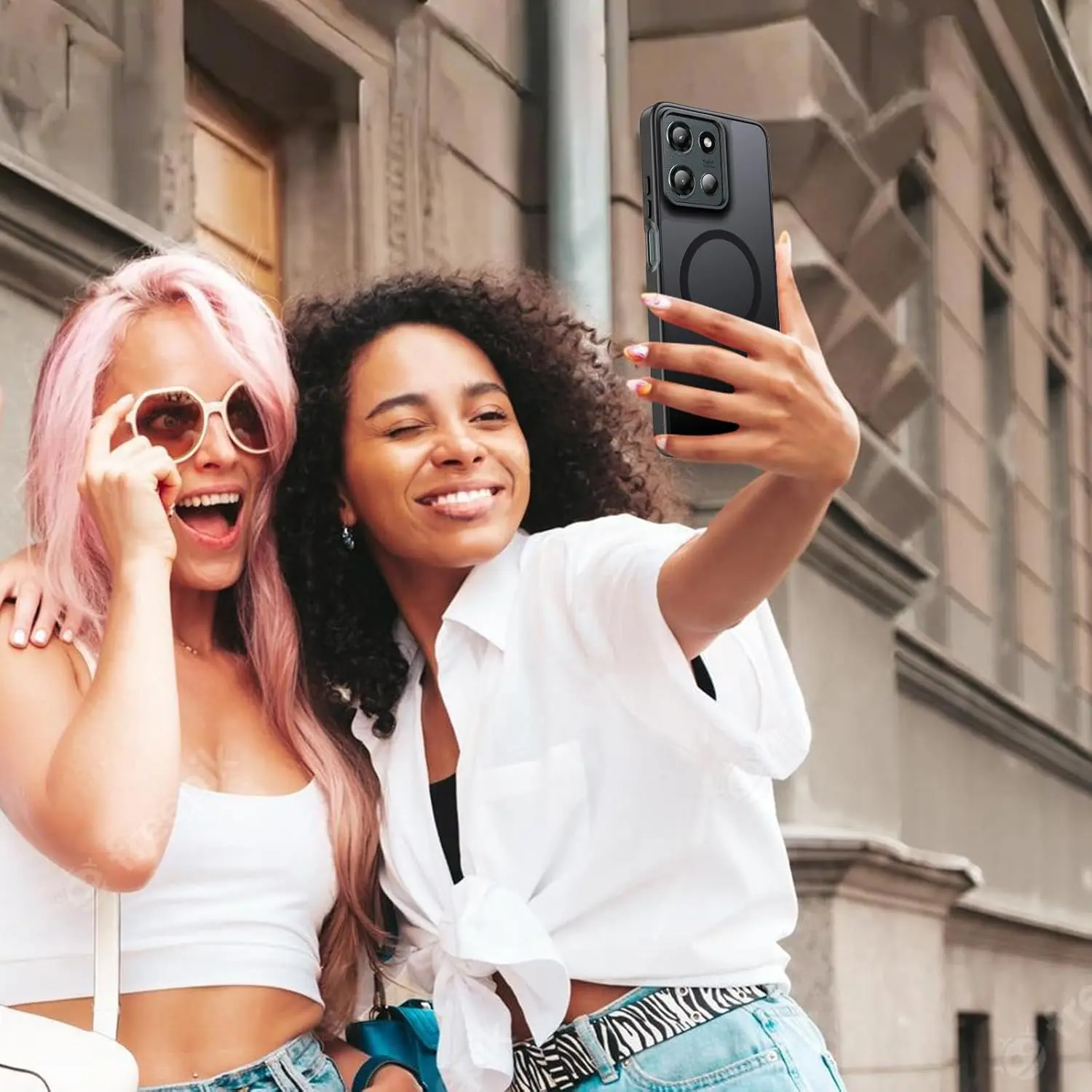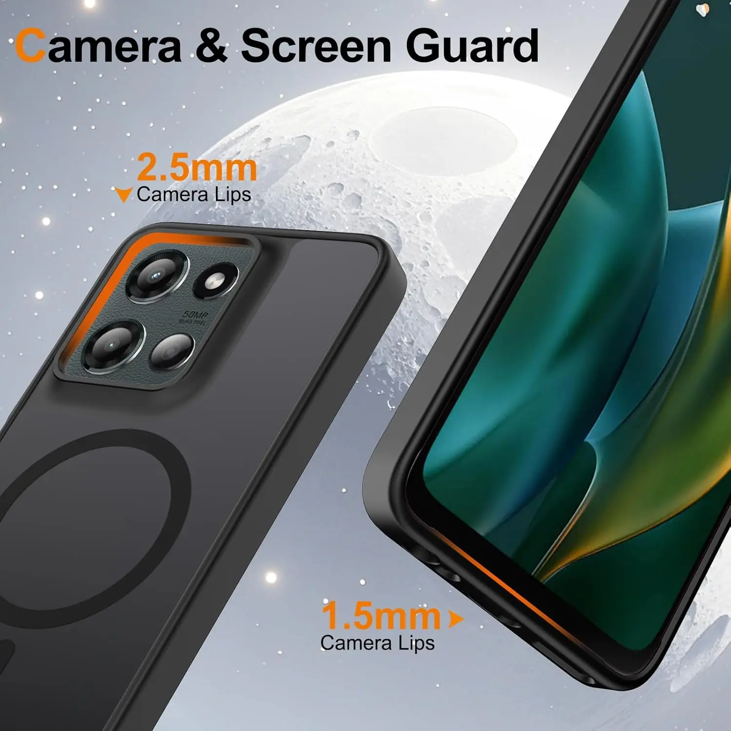 Ezanmull for Motorola Moto G 5G 2025 Case Magnetic Shockproof, [Fit for MagSafe] [Glass Screen Protector] Translucent Anti-Fingerprint Case for Motorola Moto G 5G 2025 (Black)