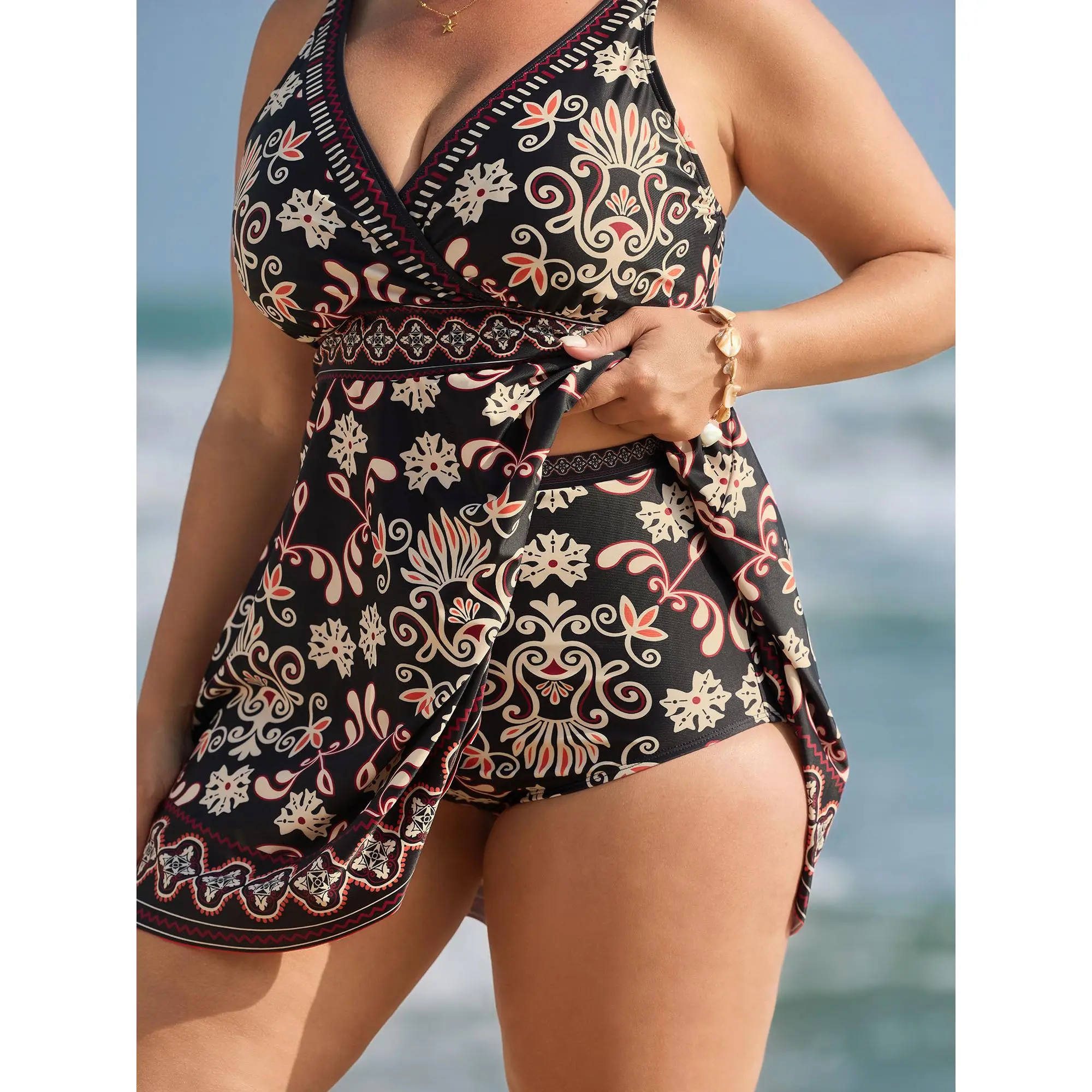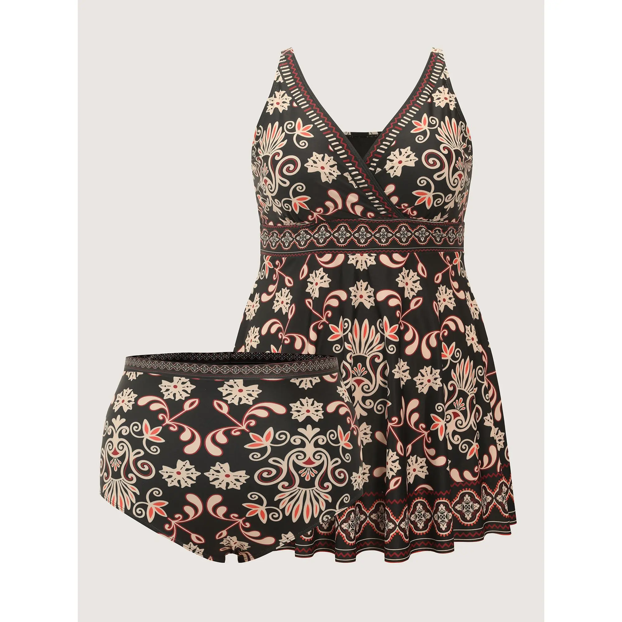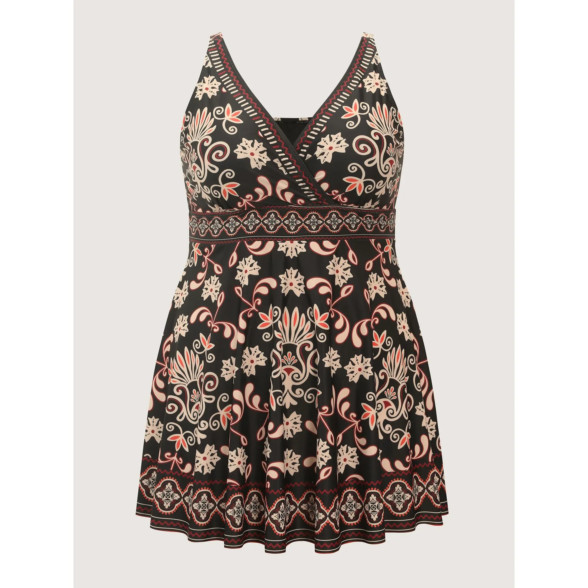 5. 【Summer Turn-Up】【Tummy Control】BLOOMCHIC Plus Size Boho Floral Print Surplice Swim Dress [M-6X] 2026 Summer Pick for Mother's Day