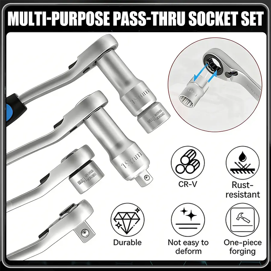 ·【Versatile Space-Saving Design】This 17PCS Pass Through Socket Set features a slim-profile offset handle, incorporating an insert-style heavy-duty ratchet and direct-pass go-through sockets. Perfectly suited for tight workspaces and accommodating even the widest hand gaps.