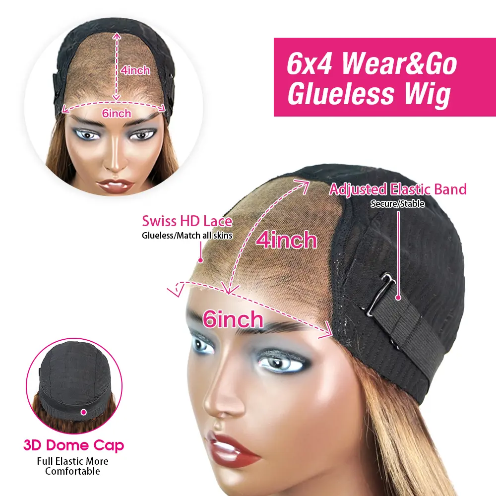 4/27 Highlight Ombre Bob Wig Glueless Ready Wear Go Wig Straight Honey Brown 6x4 HD Lace Front Wig 180% Short Bob Wig Pre plucked Natural Hairline Beginner Friendly Wig for Women