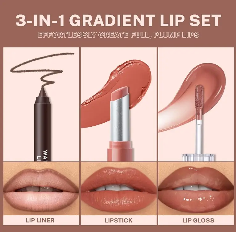 ·Get Plump Juicy Glass Lips: Create irresistible, high-shine glass lips with our all-in-one kit. Our professional 3pcs set combines a waterproof lip liner, hydrating long-lasting lipstick, and glossy lip stain oil to create multidimensional 3D lips with lasting shine and comfortable wear