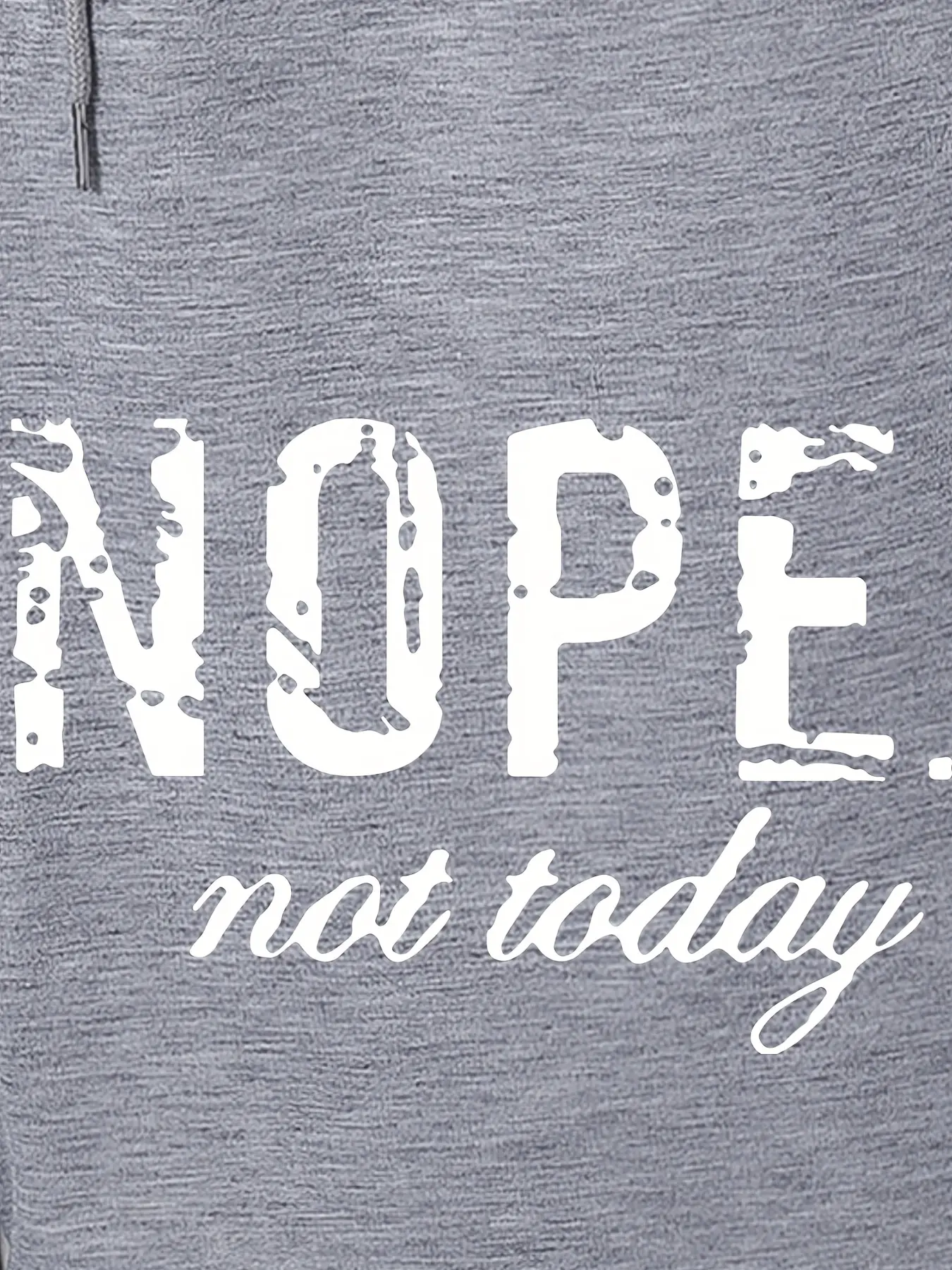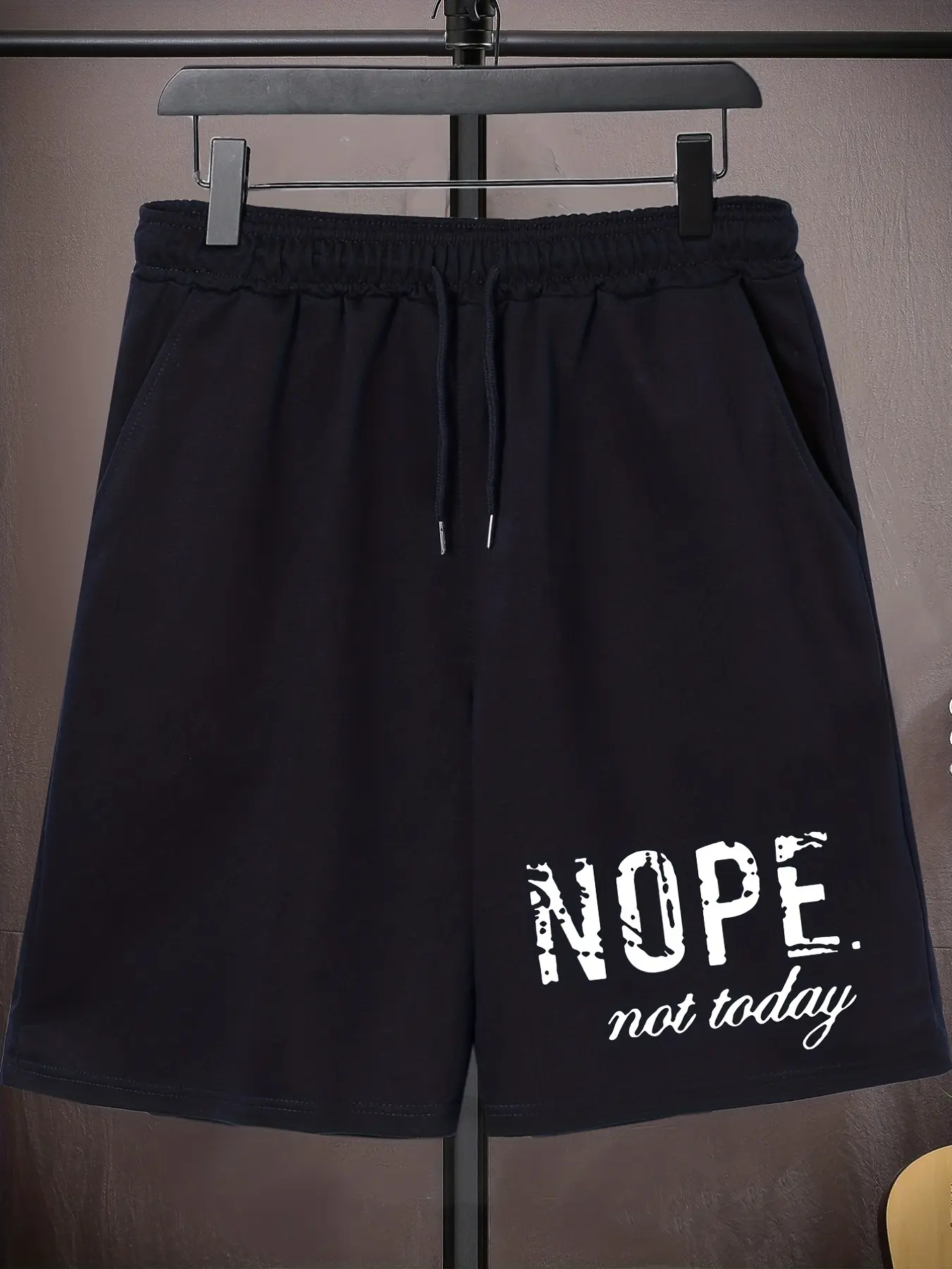 Men'S Plus Size Casual Shorts, "NOPE not today" Print, Polyester 100%, Medium Stretch Knit Fabric, Drawstring, Regular Fit, 200g/m², Oversized Elastic Sports Pants for Big & Tall Guys - Spring/Summer
