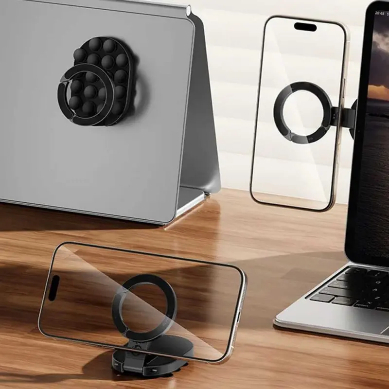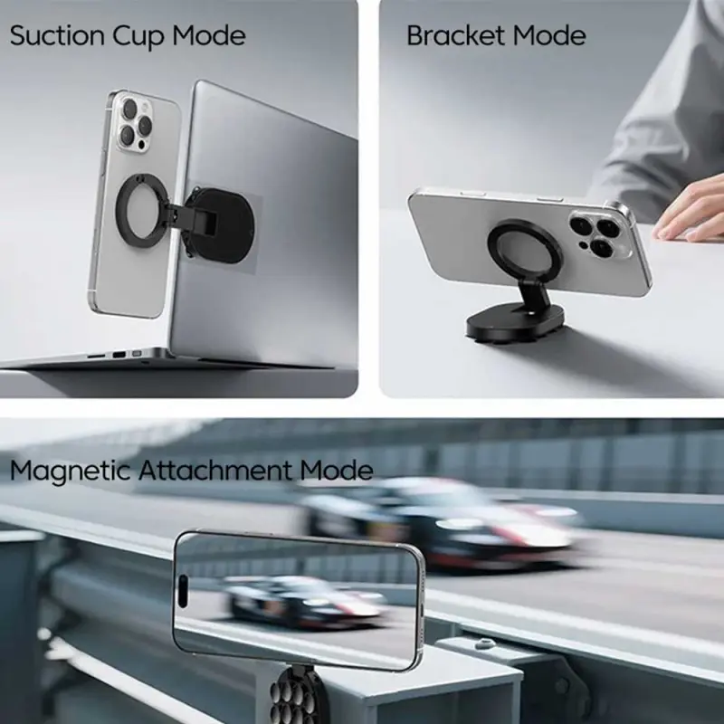 Three-in-One Magnetic Phone Stand, Multi-functional Foldable Portable Magnetic Adhesive Stand, Phone Desktop Wall Mount Stand, Finger Ring Magnetic Adhesive Stand, Foldable Rotating Three-in-One Multi-functional Phone Stand