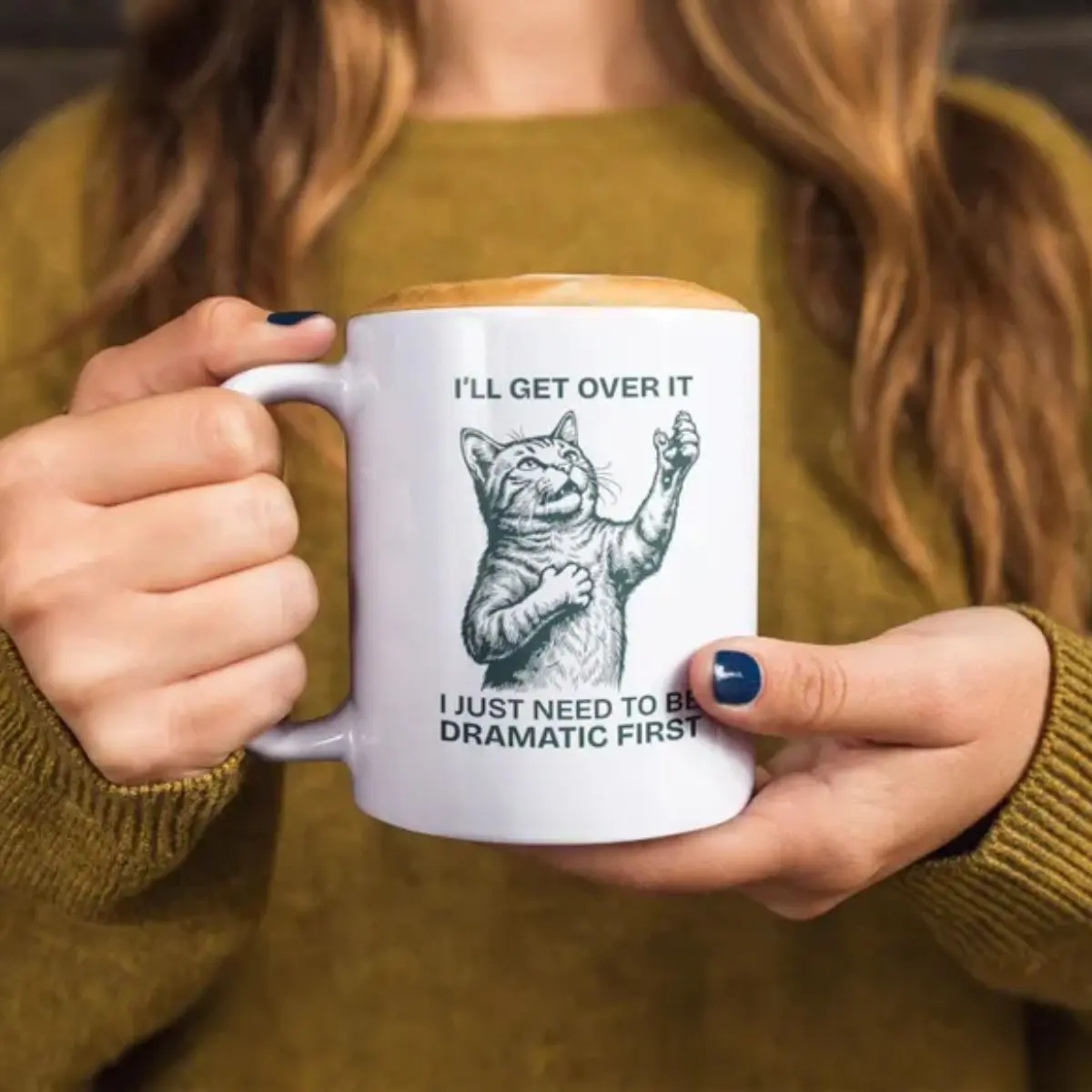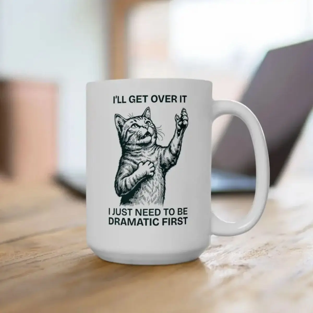 I Just Need to Be Dramatic First Cat Mug – Funny Meme Cat Coffee Mug, Dramatic Cat Humor Cup, Cute Cat Lover Gift, Aesthetic Coffee Mug