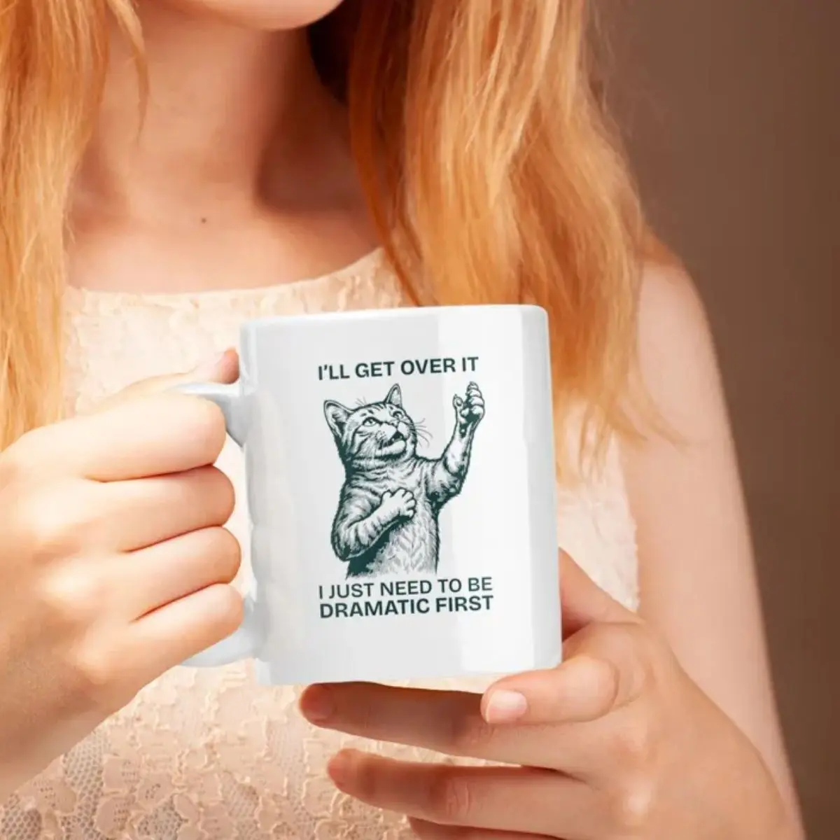 5. I Just Need to Be Dramatic First Cat Mug – Funny Meme Cat Coffee Mug, Dramatic Cat Humor Cup, Cute Cat Lover Gift, Aesthetic Coffee Mug