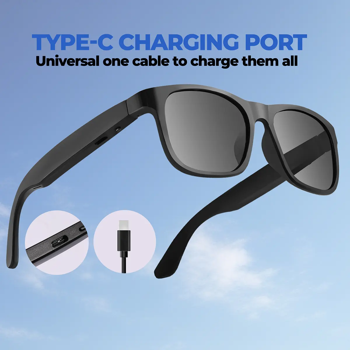 With up to 8 hours of continuous playtime and 200 hours of standby time, these smart glasses keep up with your busy schedule. The universal Type-C charging port means you can charge your glasses with the same cable you use for your phone, laptop, or other devices – no more proprietary chargers, no more hassle. Charge in just 1.5 hours for a full day of use.