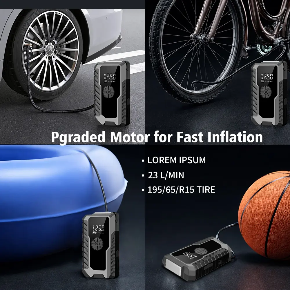 Cross-Country Road Adventure: Midway through a cross-country drive, you notice your car's tire pressure is low. Instead of searching for the next gas station, you pull over, use the air compressor to quickly inflate the tire to the optimal pressure, and continue your journey without delay.