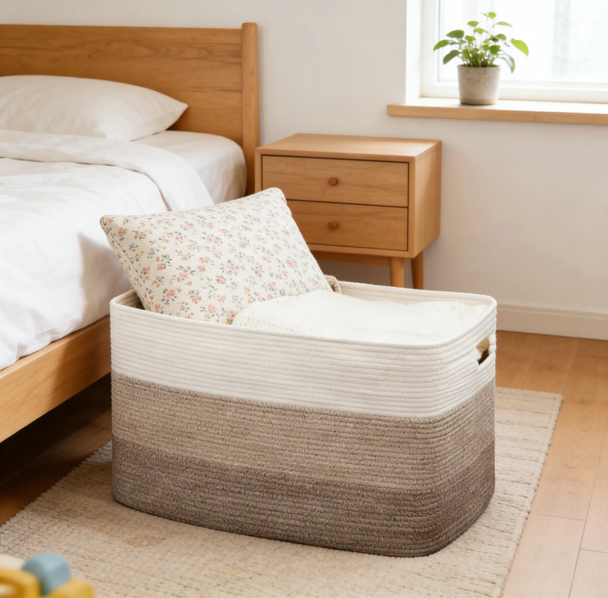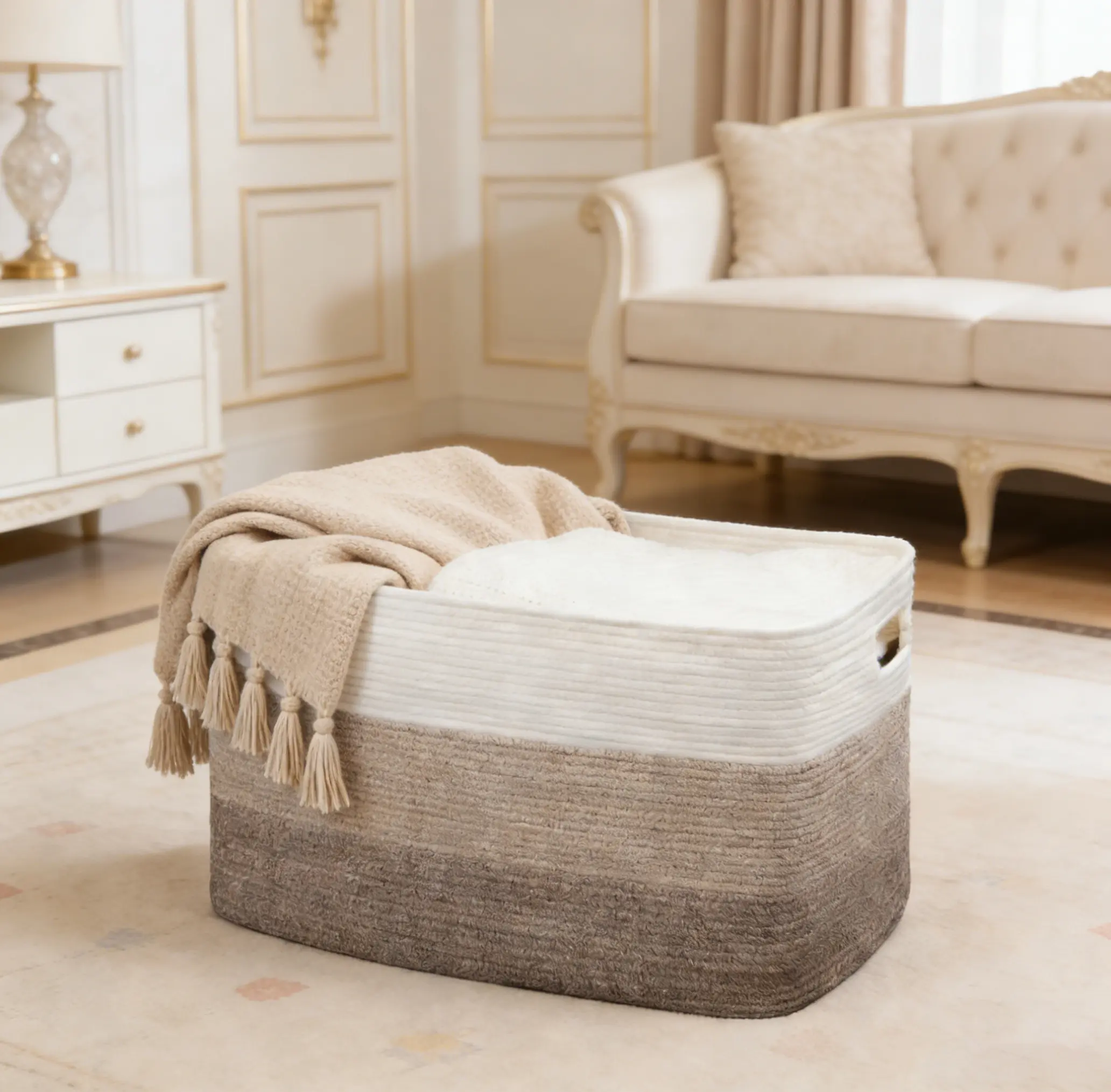 What sets this basket apart is its exceptional design. The rectangular shape ensures superior stability and easy restoration after shipping. Rectangular blanket baskets are more stable and easier to restore to their original shape after receiving a package. Simply fill the basket with pillows or blankets and iron repeatedly to speed up the gradual return of the basket to its original shape.