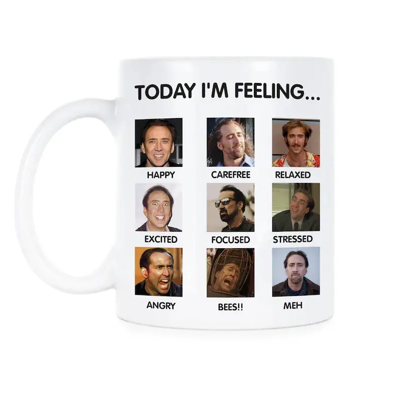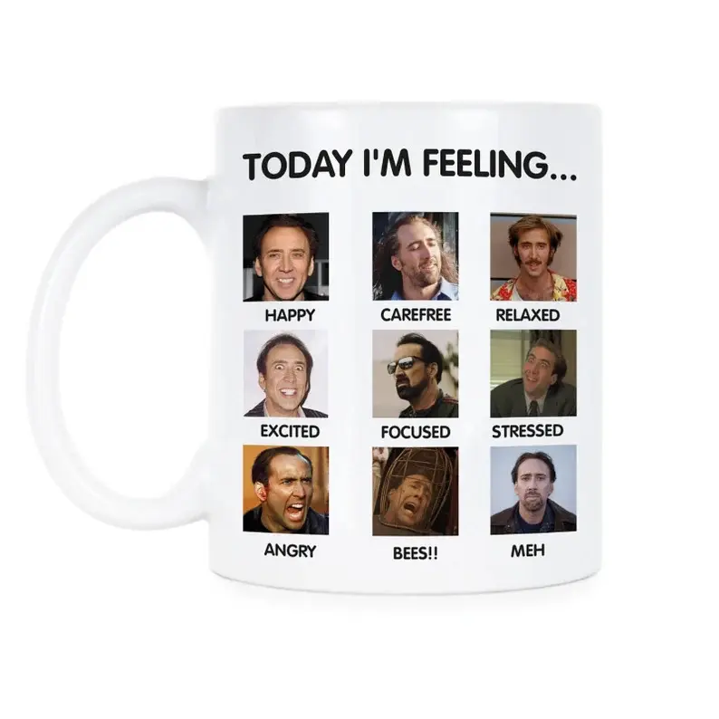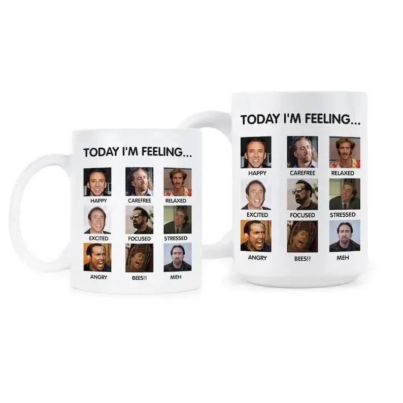 Funny Nicolas Cage Meme 11oz & 15oz Mug, Iconic Celebrity Face Coffee Cup, Hilarious Sarcastic Gift for Nic Cage Fans, 11oz High-Quality Ceramic Beverage Mug, Unique Gag Gift for Movie Marathons