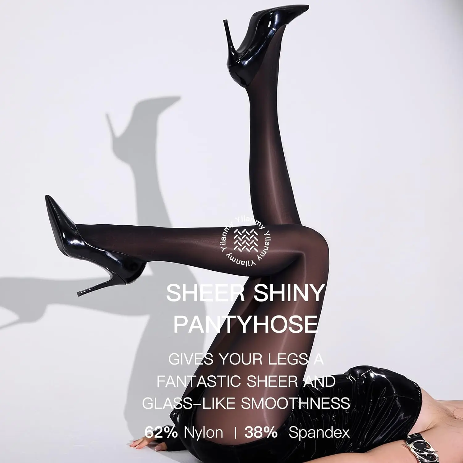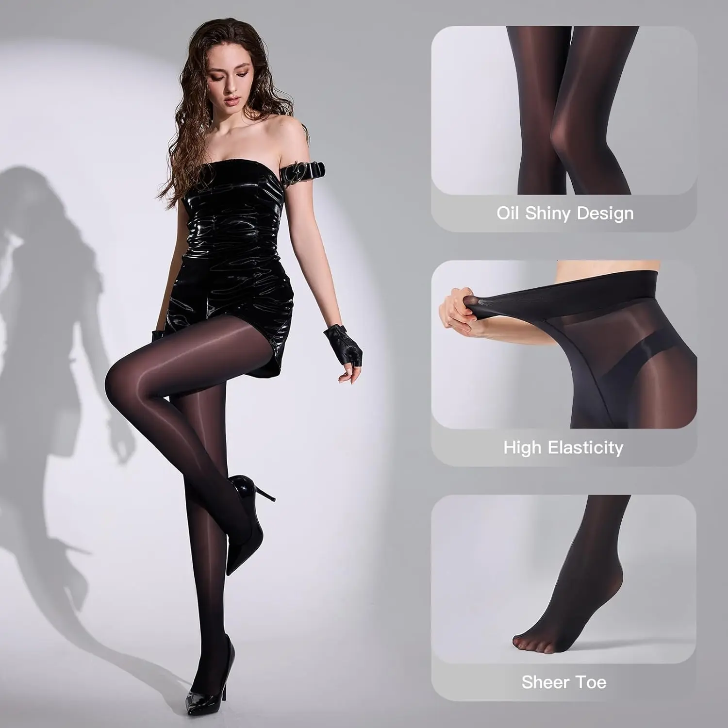 Shiny Sheer Pantyhose for Women Oil Shimmer Tights Silky High Waisted Stockings Dance Jazz Tights