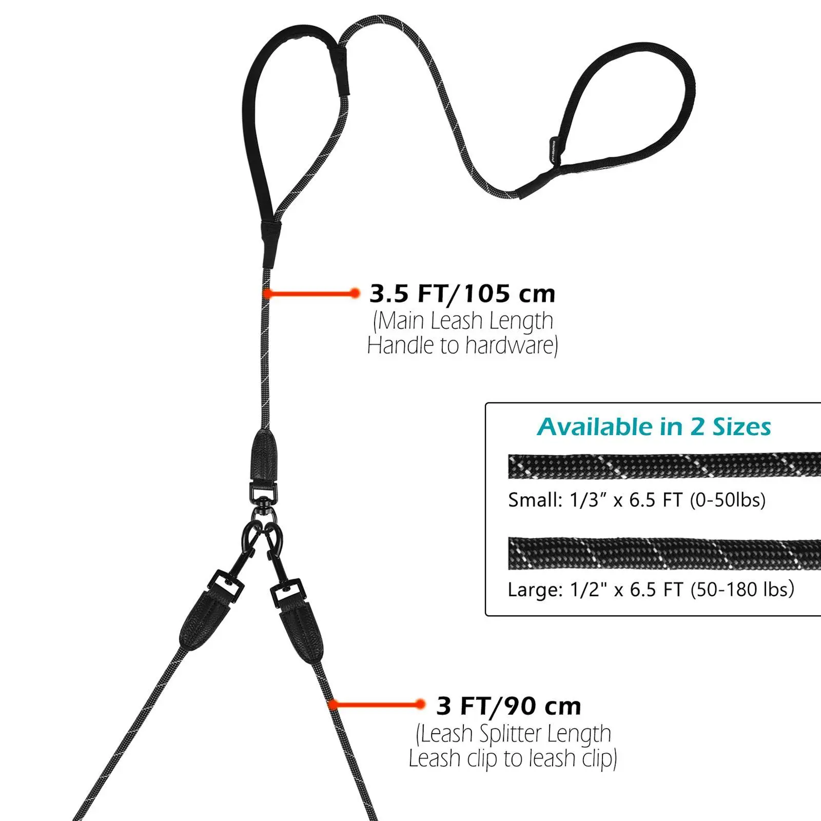 Lightweight Design:The 1/3" x 6.5 FT double leash for small dogs up to 55 lbs is Only 235g(8.3oz), the dual leash attachment for 2 dogs is perfect for you and your puppies, doggies when walking or training