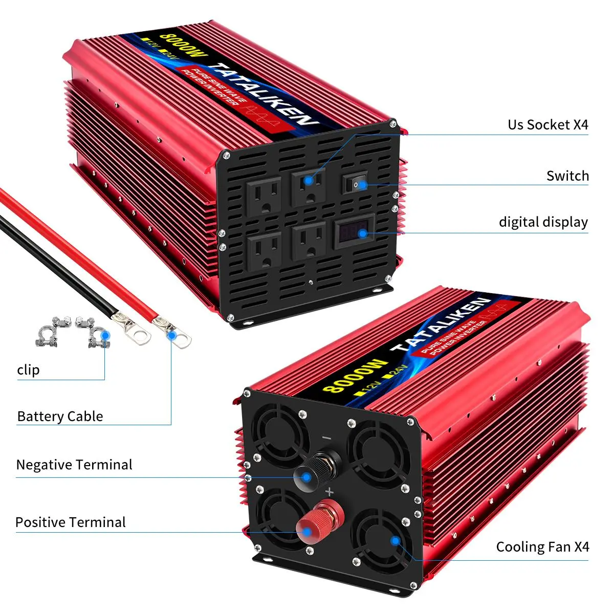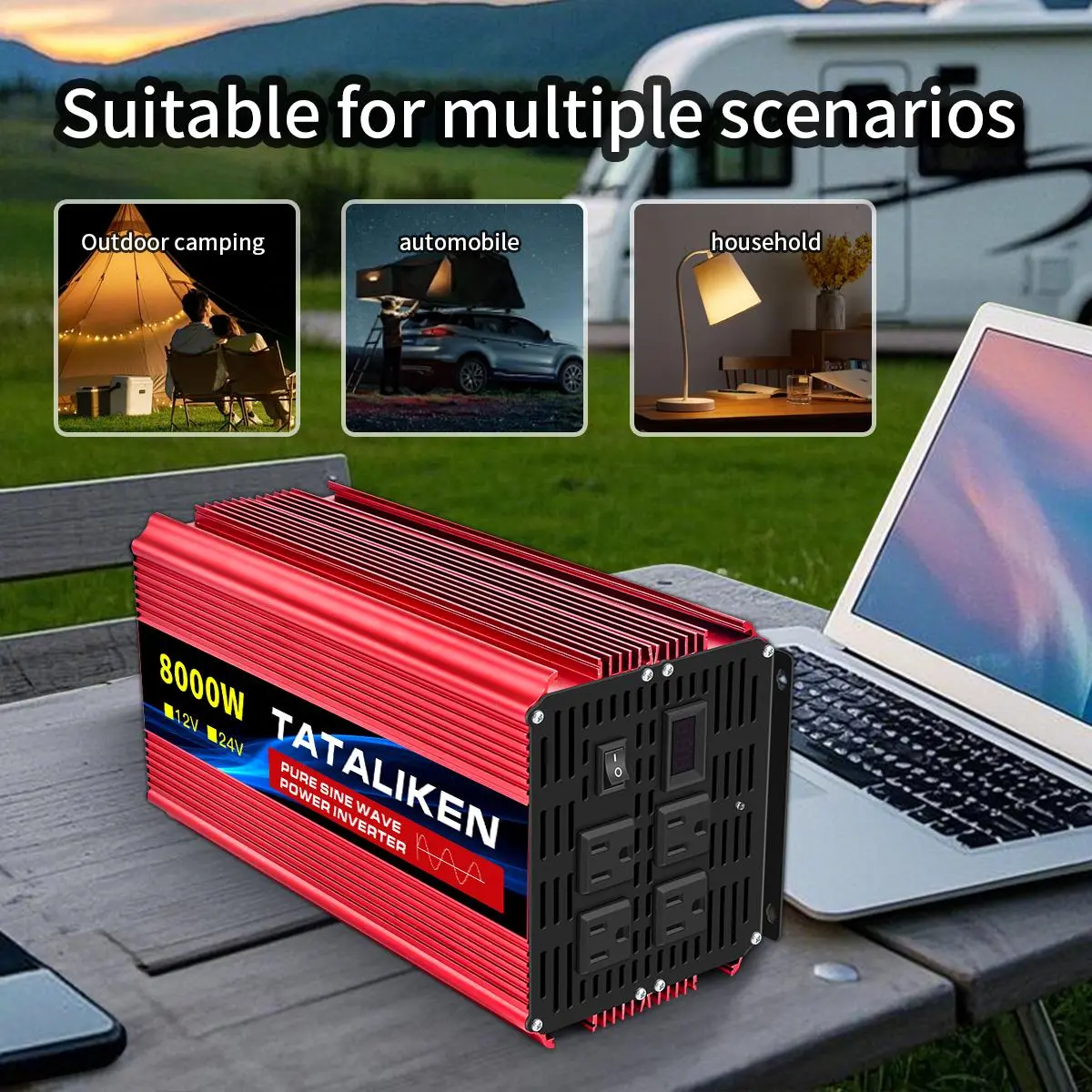 Pure sine wave inverter 7000W/8000W, DC 12V/24V to AC 110V, mobile phone/computer/car refrigerator is ready to charge, say goodbye to the anxiety of power outage, overload protection, and more at ease when using electricity