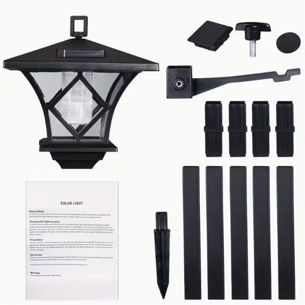 This outdoor solar lamp post is perfect for enhancing your lawn, pathway, yard, and front/back door. It features a sleek design that complements any outdoor decor. The lamp post is waterproof, ensuring durability in various weather conditions.