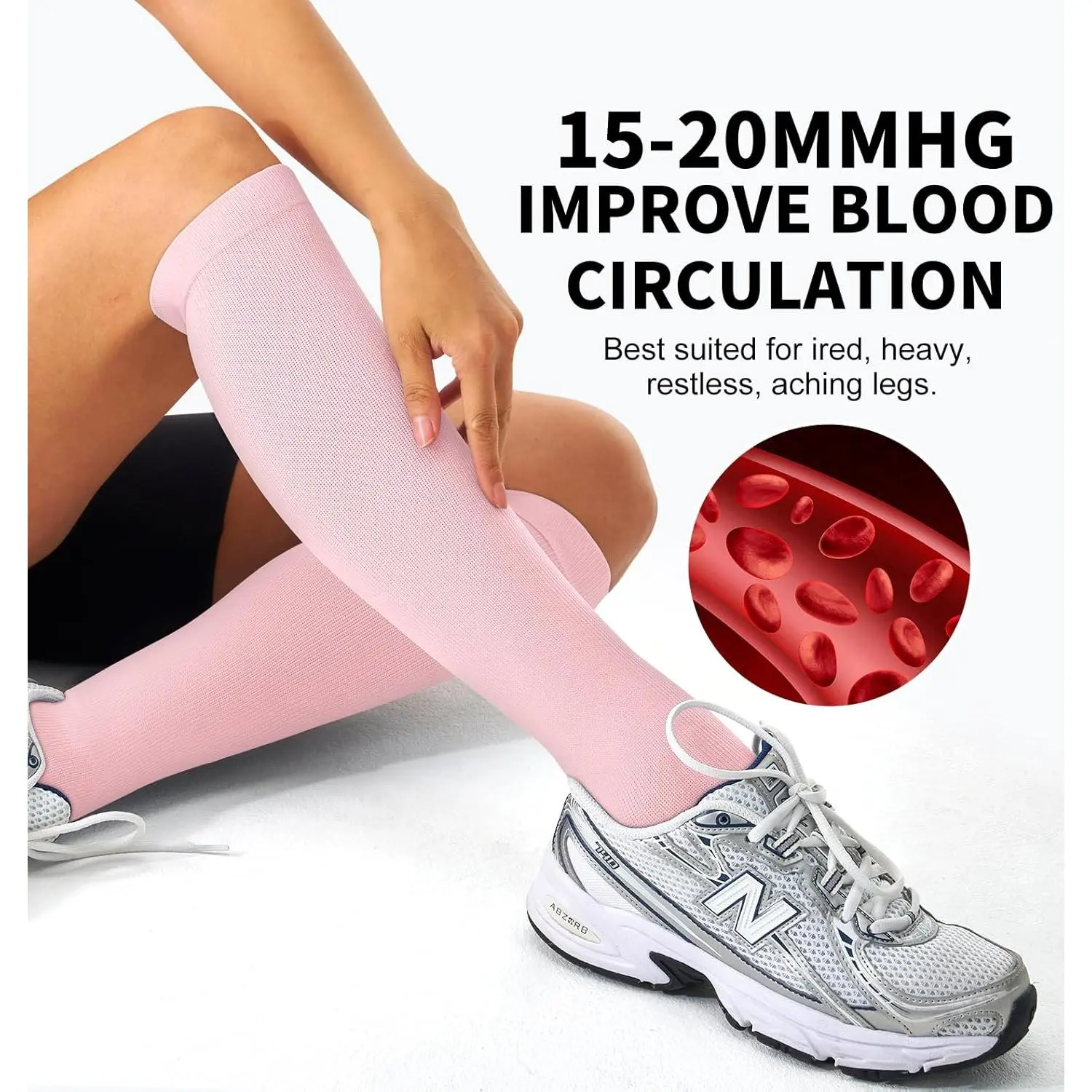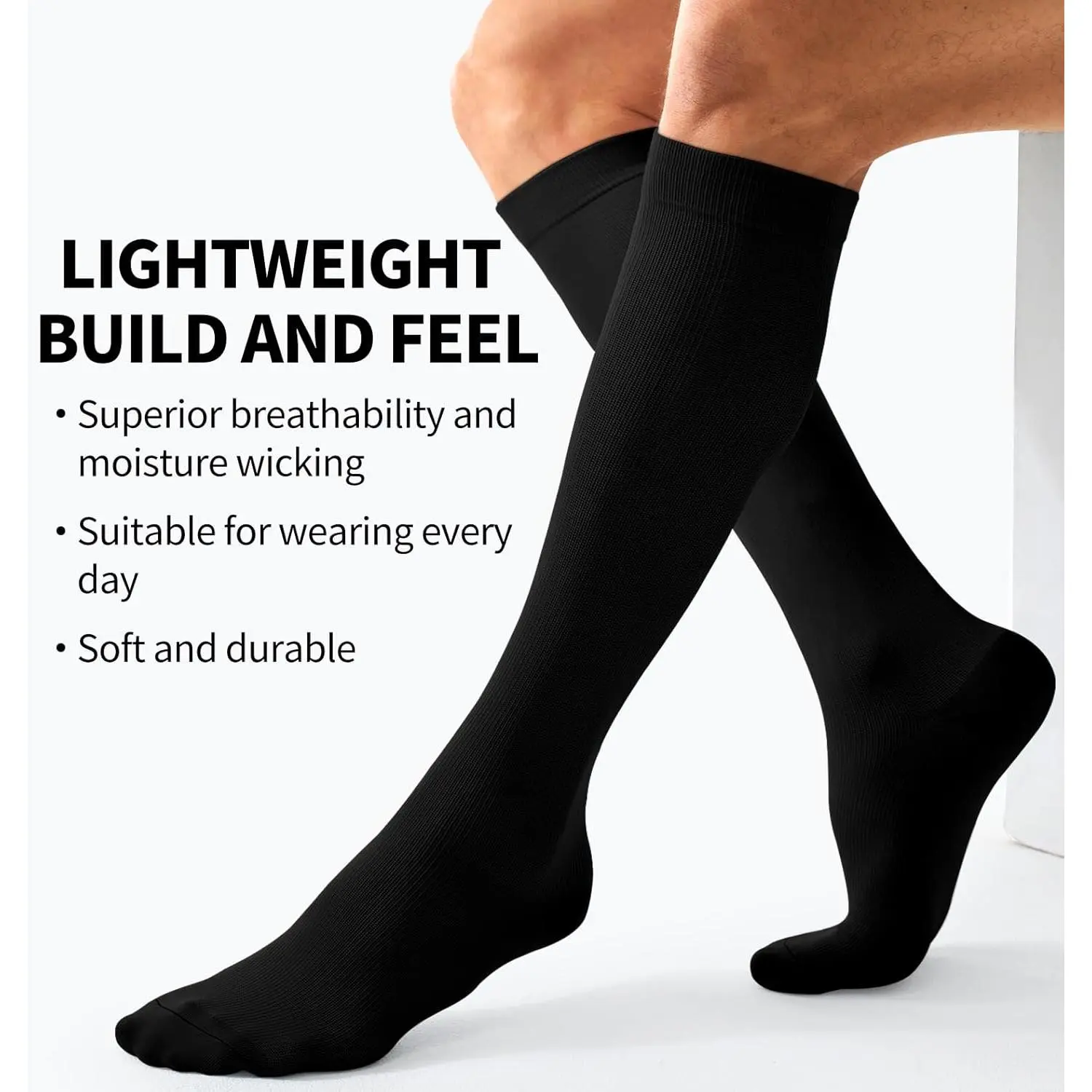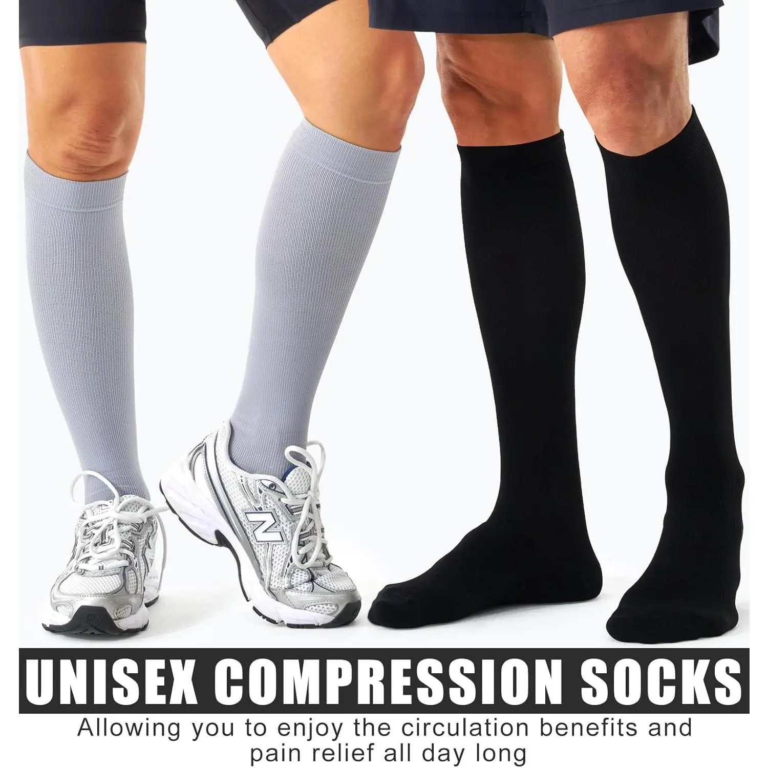 HOW COMPRESSION SOCKS WORK-By creating pressure on the legs, starting from maximum compression at the ankles and gradually decreasing toward the top of the garment.This helps move blood toward the heart, improves blood circulation in the legs, reduces swelling,and lowers the risk of blood clots.