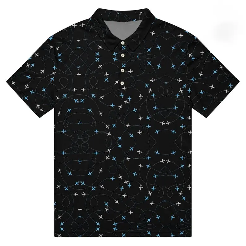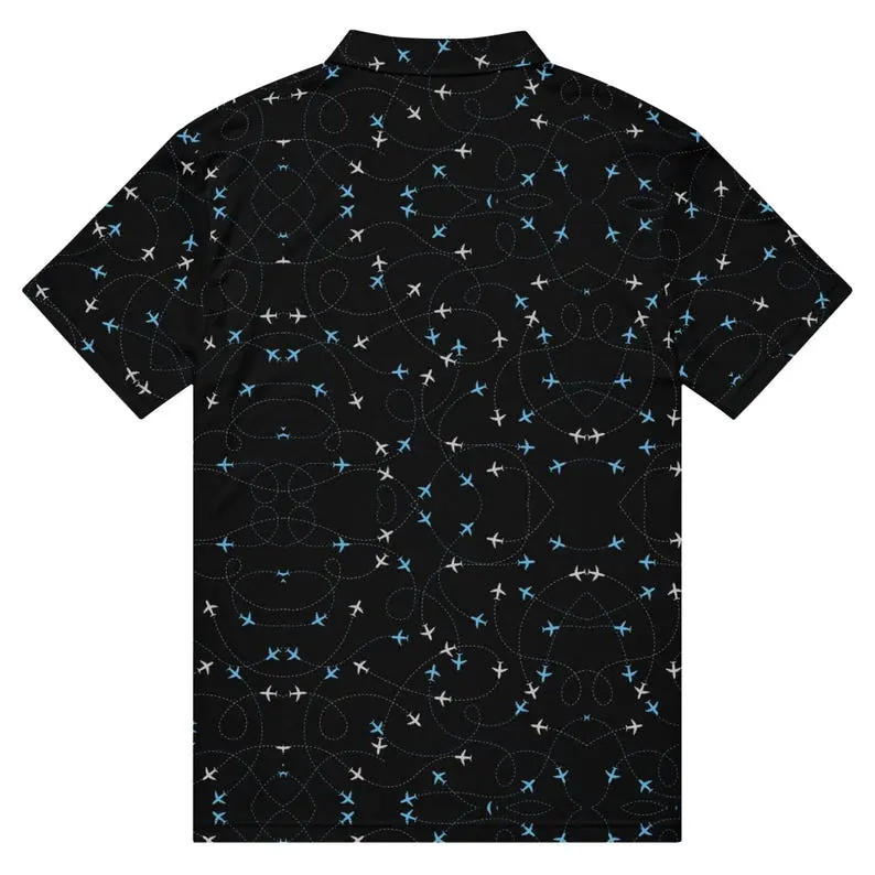 Plane Pattern Adult Unisex All-Over Slim Fit Polo Shirt, Aviation Enthusiast Gift, Pilot Shirt, Airplane Apparel, Travel Blogger Outfit
