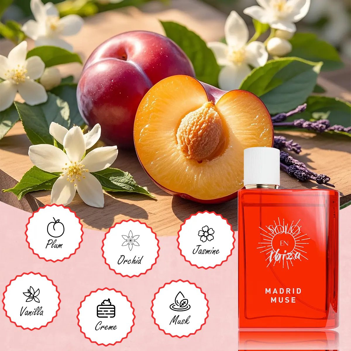 Solo En Ibiza Madrid Muse Eau de Parfum | Plum Orchid Vanilla Musk | Long-Lasting Scent | 100ml