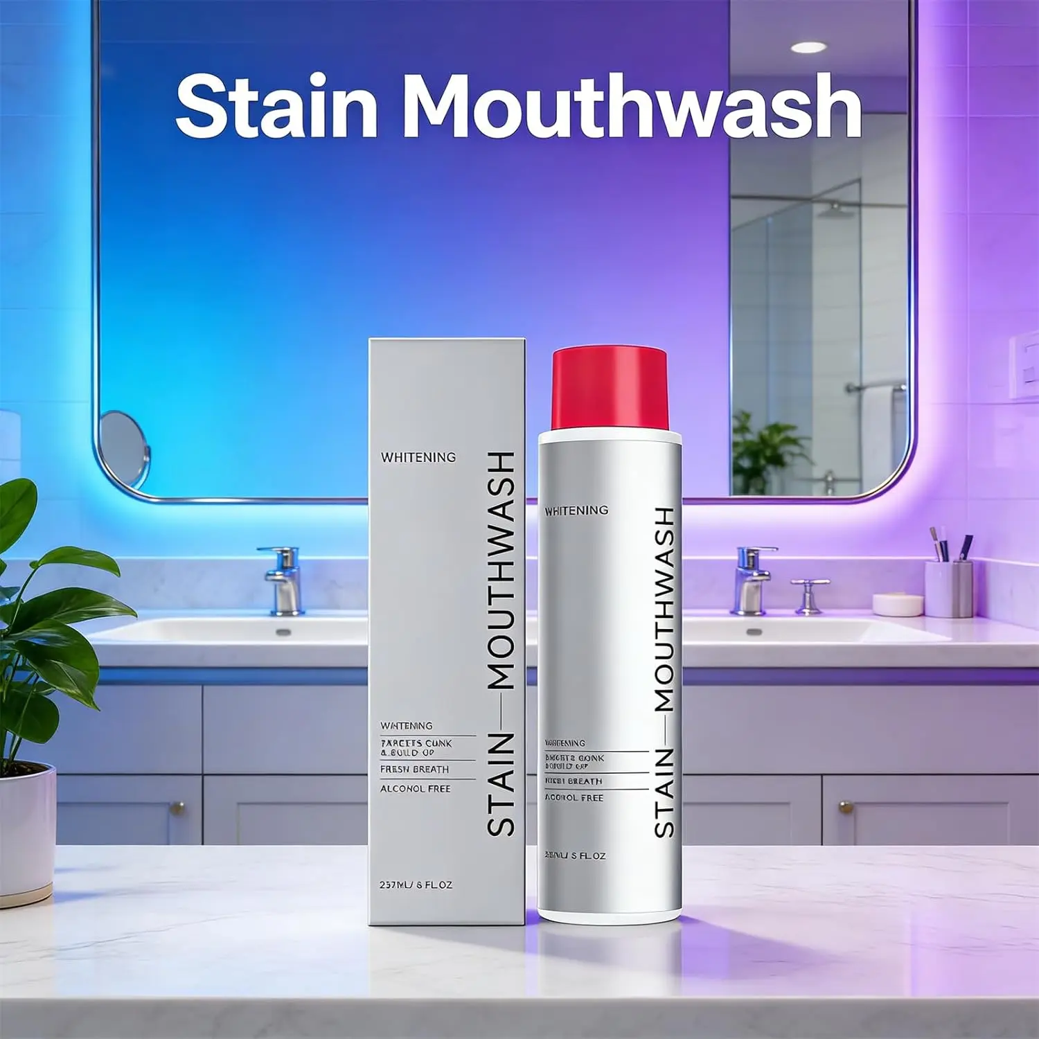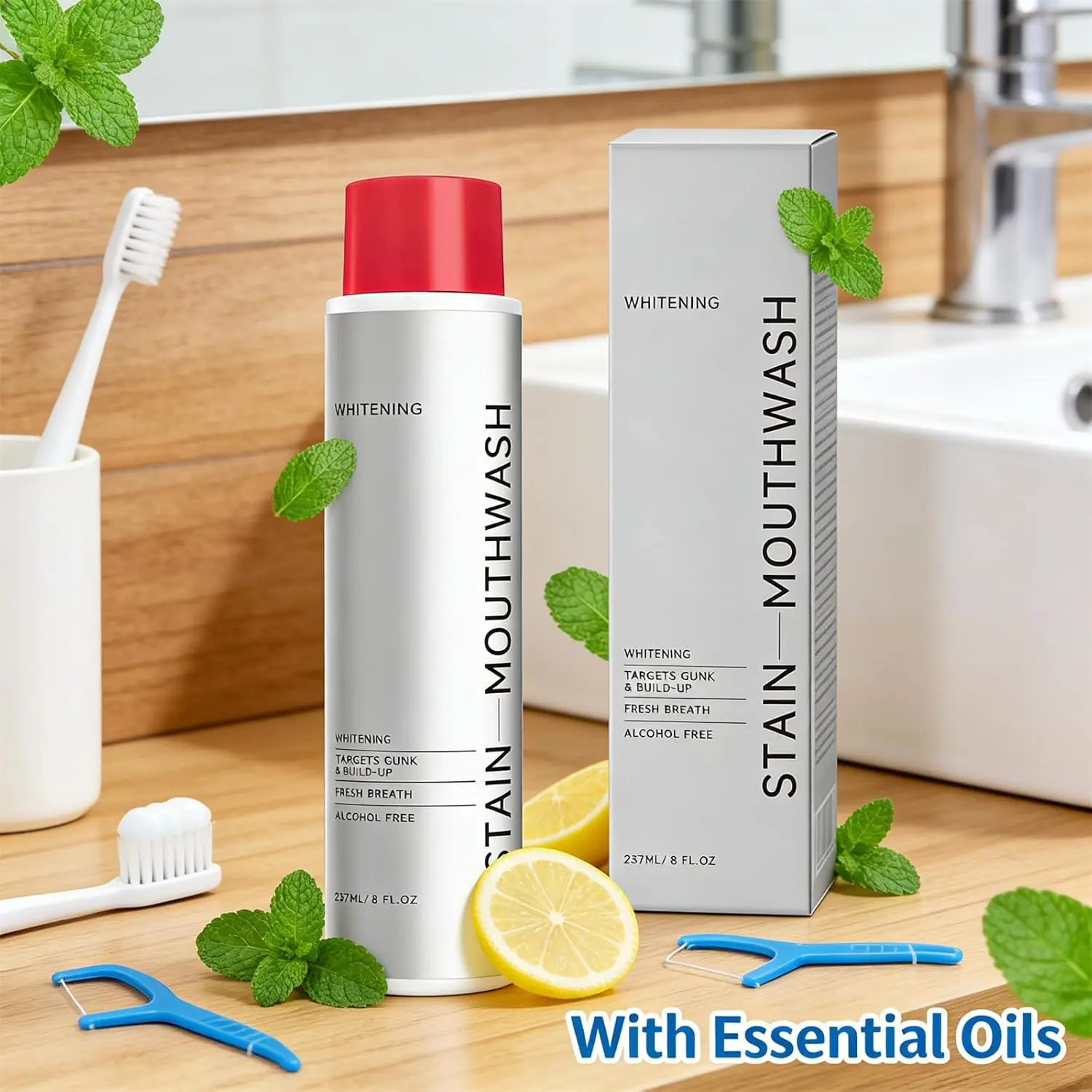 Stain Mouthwash, Gunk Removing Mouthwash for Fresh Breath, Gentle Oral Hygiene, Fresh and Long-Lasting Fragrance, with Essential Oils 237ml (2PCS)