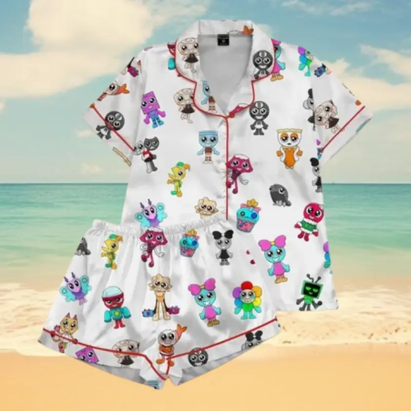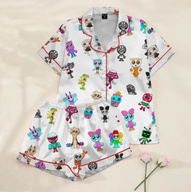 5. Dandy’s World Silky Pajamas Set, Roblox Dandy World Fan Gift, Dandy’s World Satin Pajamas For Women, Gaming Satin Sleepwear for Adults, Cute Cartoon Gamer Nightwear