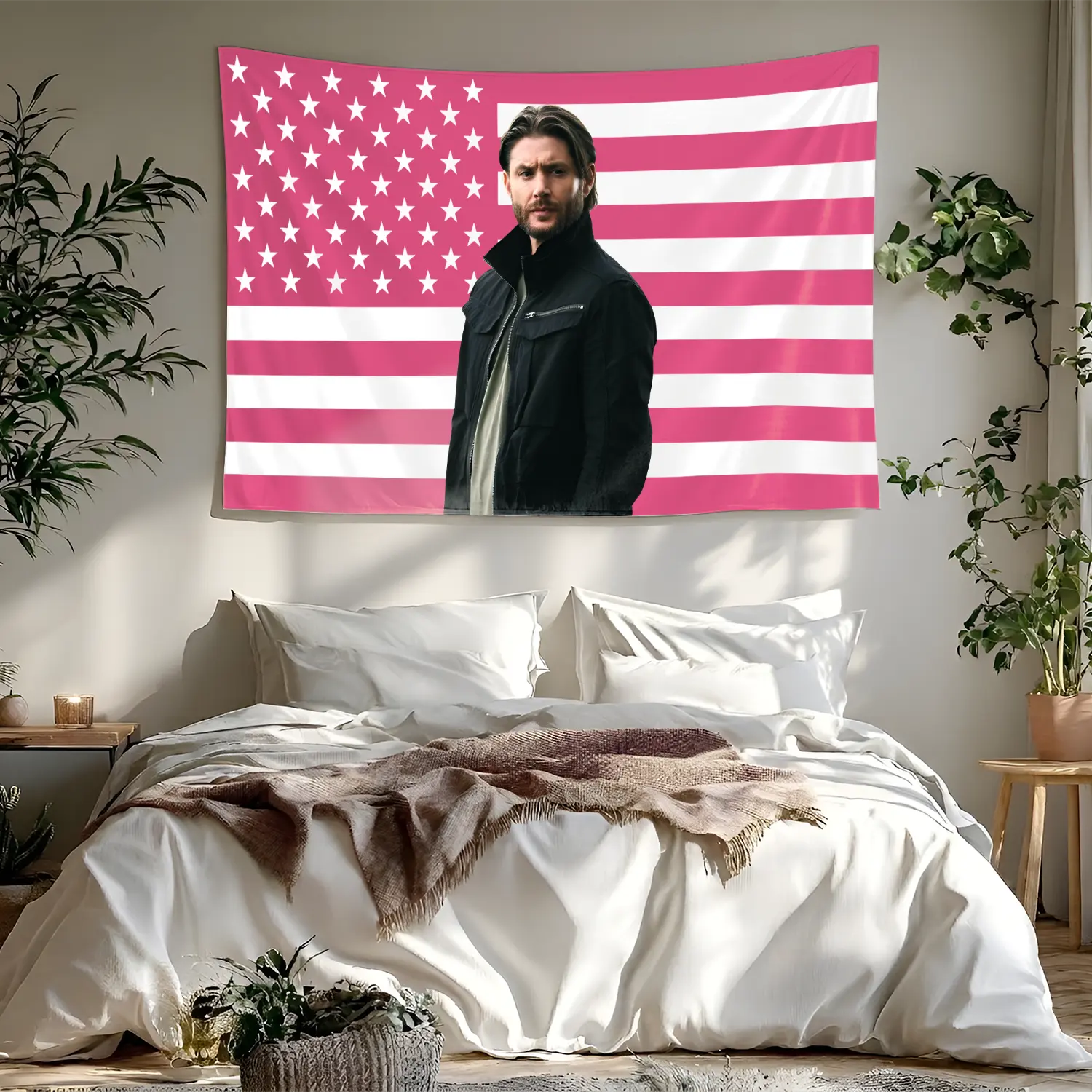 Jensen Ackles Tapestry, Supernatural TV Show Actor Wall Hanging Decor, Retro Fandom Art Banner, Bedroom Wall Art, Gift for Fans