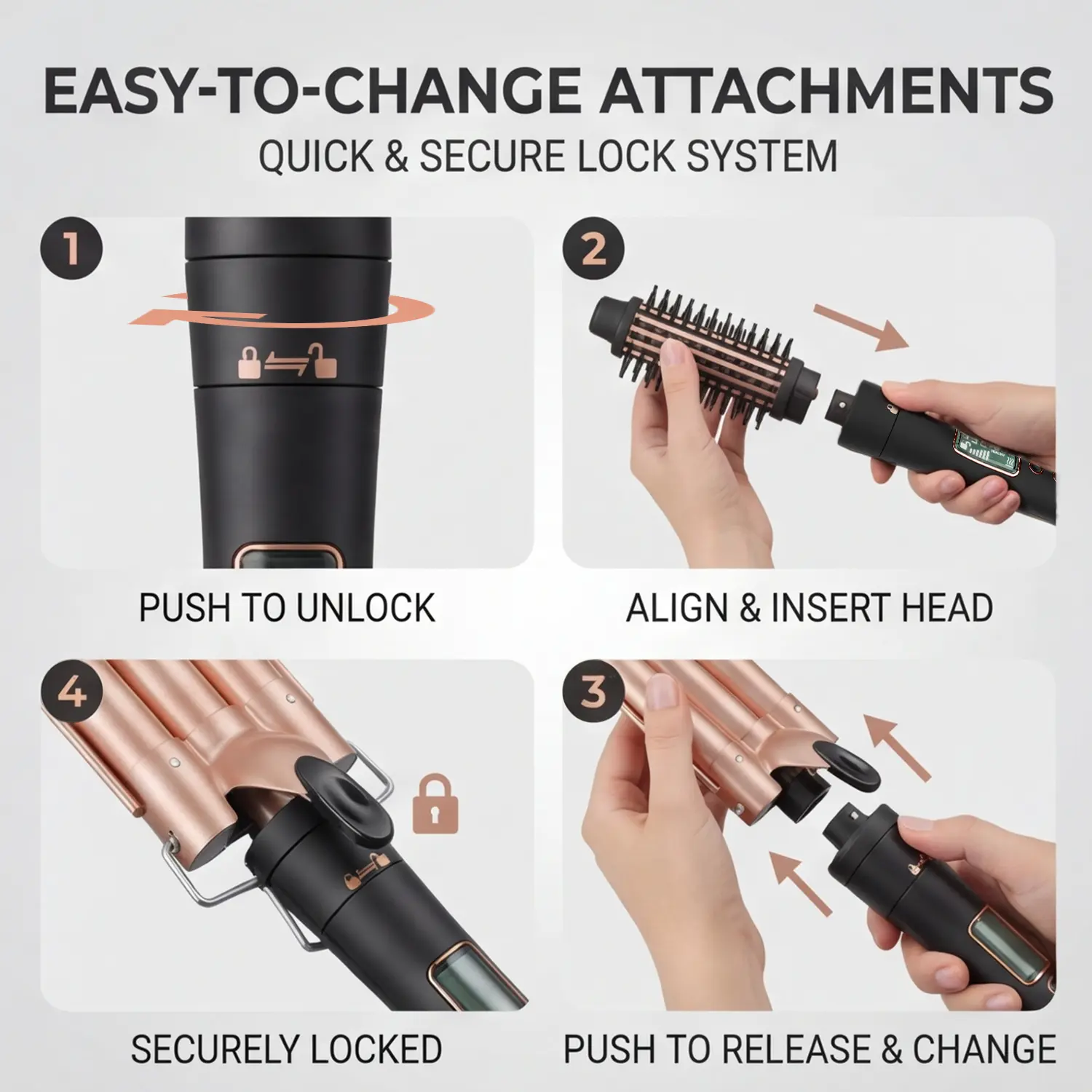 Effortless Replace Barrel: The quick installation design makes it easy to change the barrel to create different styles of curls. Scald resistant tips and heat-resistant gloves can protect your hands from the heating bucket