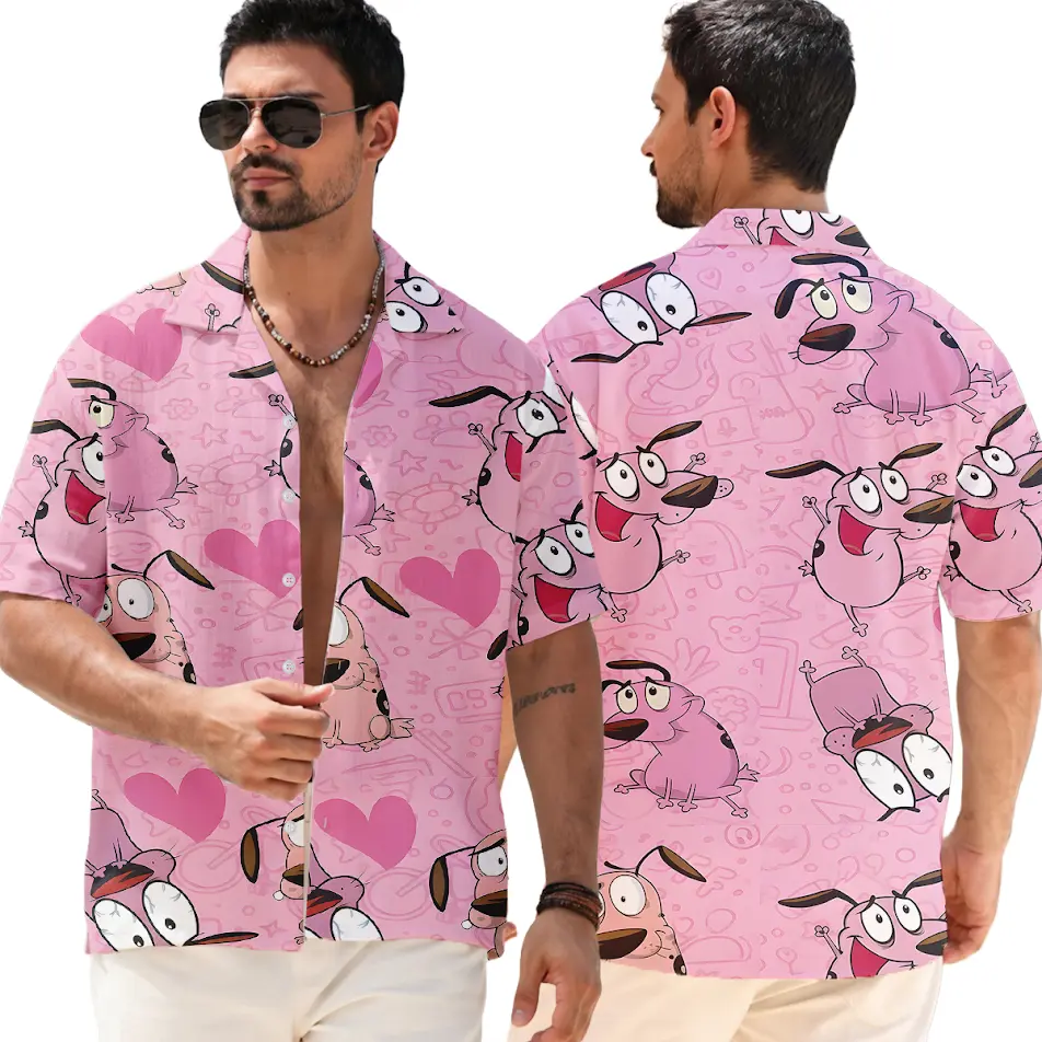 5. Courage The Cowardly Dog Pink Pattern 2026 Vacation Couple Set Dress and Shirt Hawaii, Retro Cartoon Fan Apparel, Summer Outfit | 300326.R3032.ID00