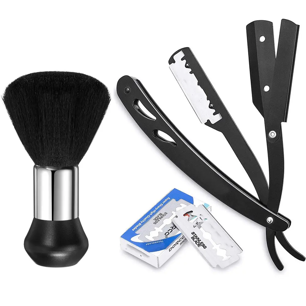 Durable to use: our barber straight razors are made of quality stainless steel, which is sturdy and not easy to get rusty or scratched with use, built with a blade guard which is easy to open, safe for you to change or replace each blade effortlessly; This neck duster brush is adopted with fine high-density nylon fiber bristles, comfortable and soft, that are gentle on skin and work well for brushing off hair around the neckline and ears after a haircut