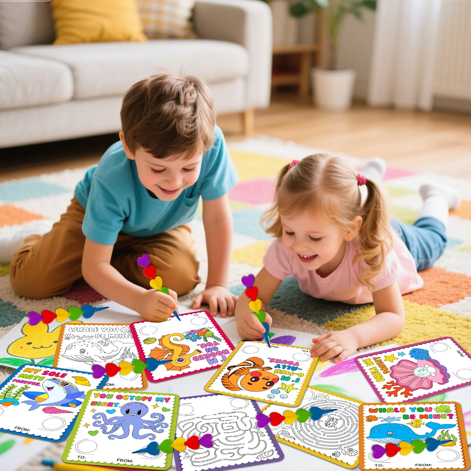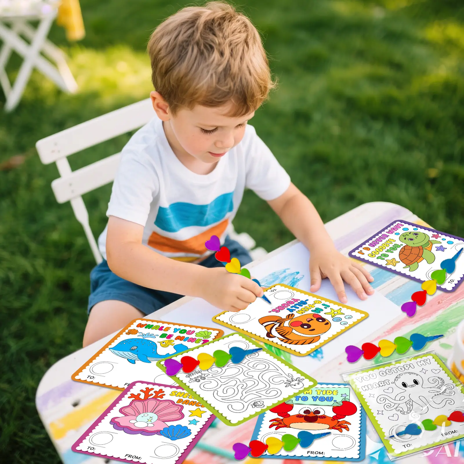 ✨ 24Pcs Marine Animals Coloring Cards come with 24 stacking crayons. Perfect for home doodles, party favors, and classroom prizes. These cards are ideal for birthday gifts and school exchange gifts. Kids will enjoy coloring marine animals with the included crayons.