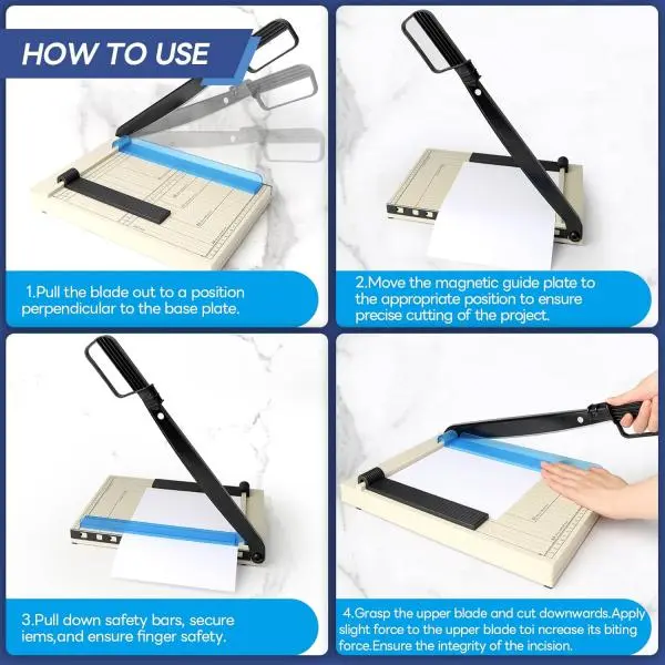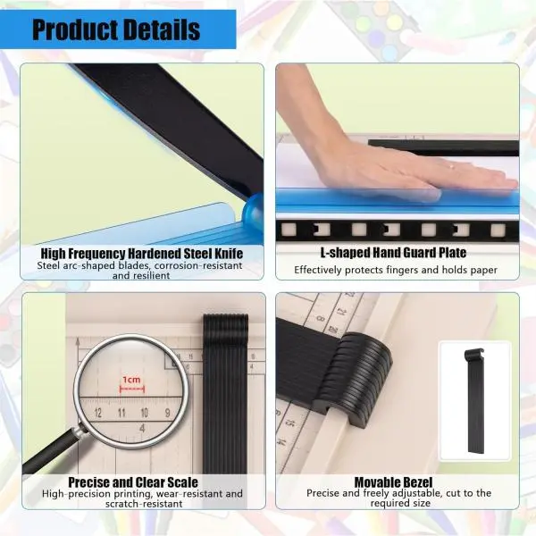 ·Sharp Stainless Steel Blade: Features a high-quality, self-sharpening blade that glides smoothly through paper, ensuring clean, straight cuts every time. Ideal for documents, photos, and craft projects.