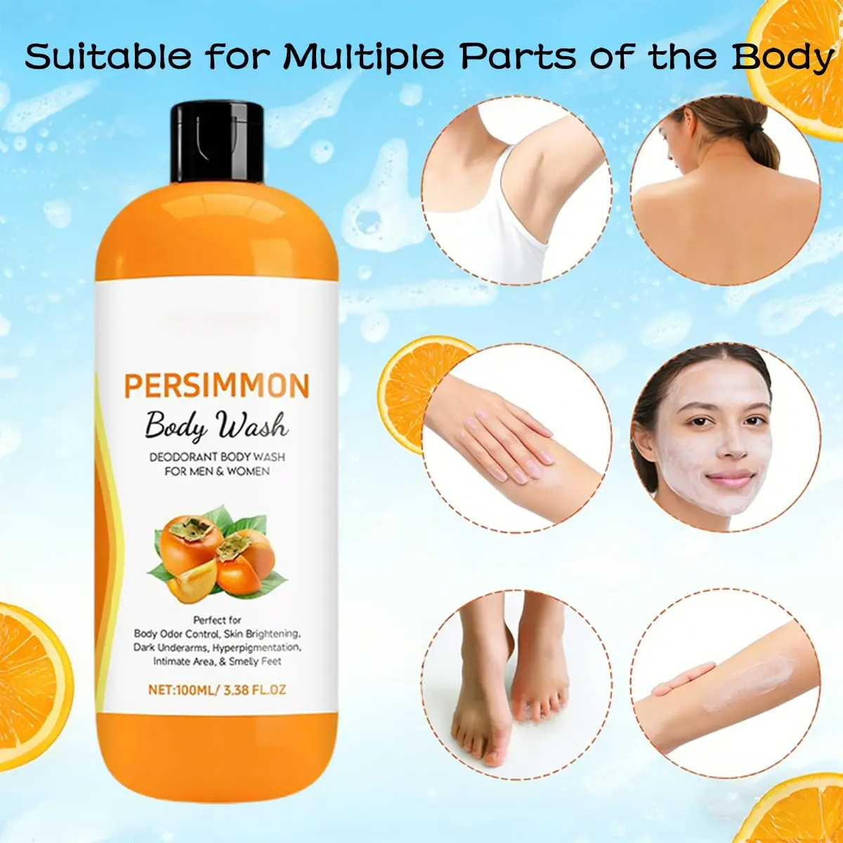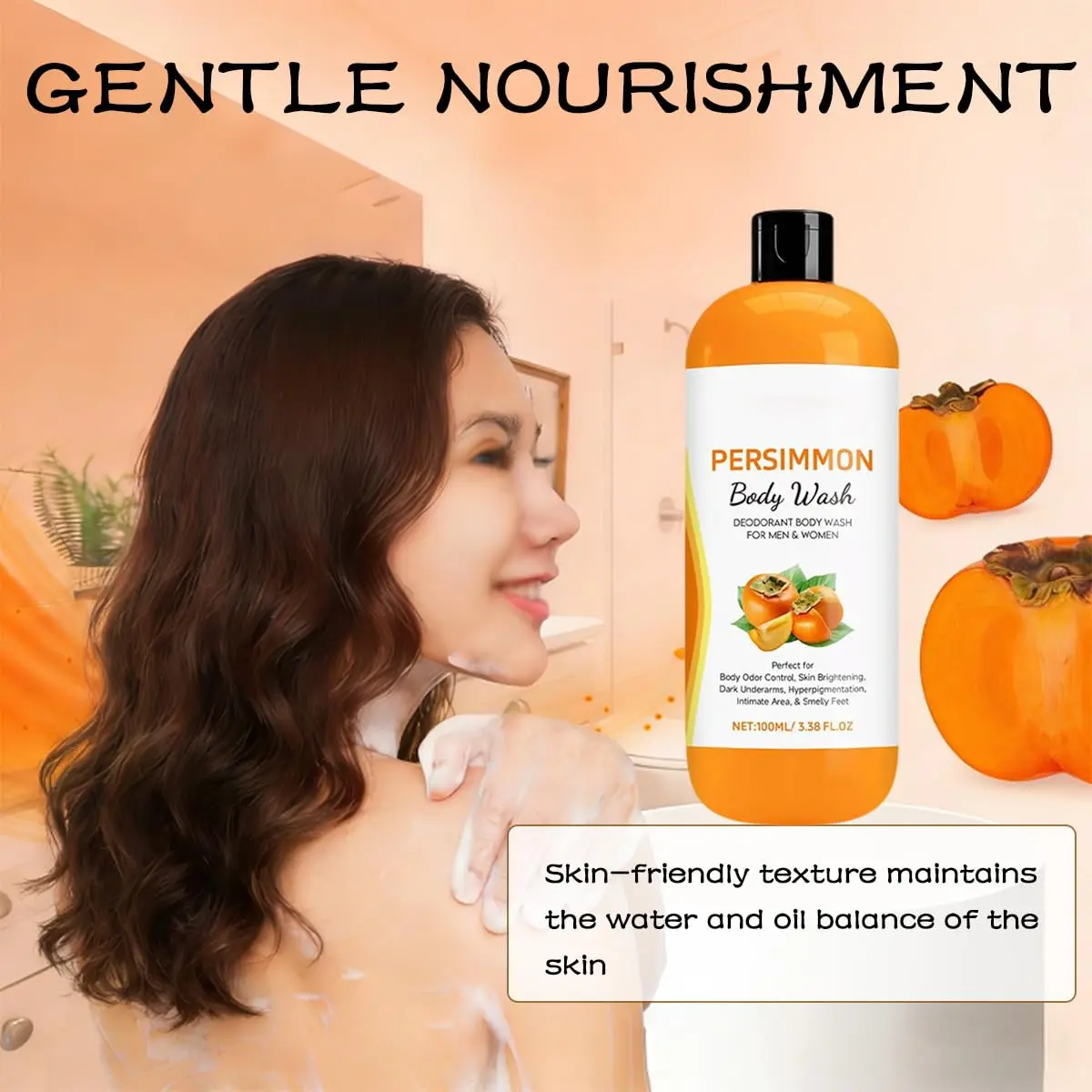 Persimmon Bath Wash Gel for Women & Men, Cleansing Body Deodorizing, Refreshing & Moisturizing Nourishing Skin, Gentle for Skins(3.38floz/pcs) (1Pcs)