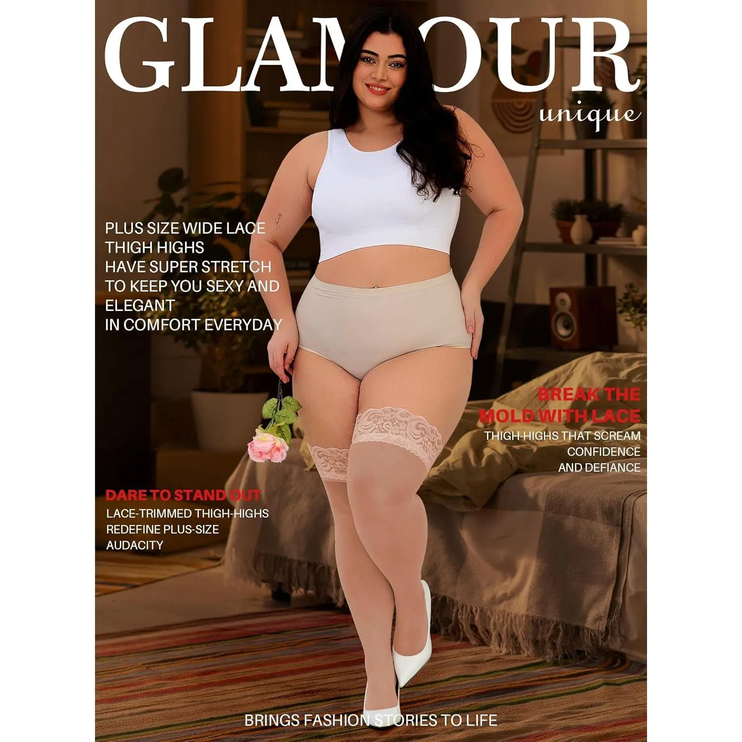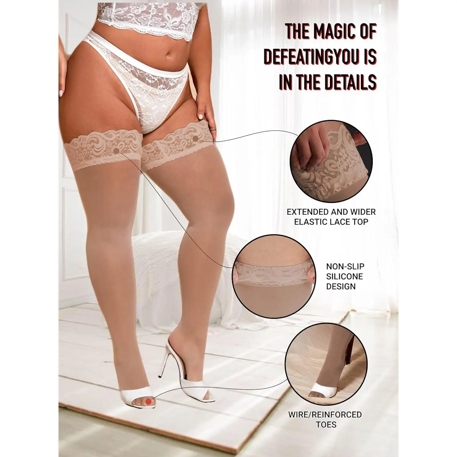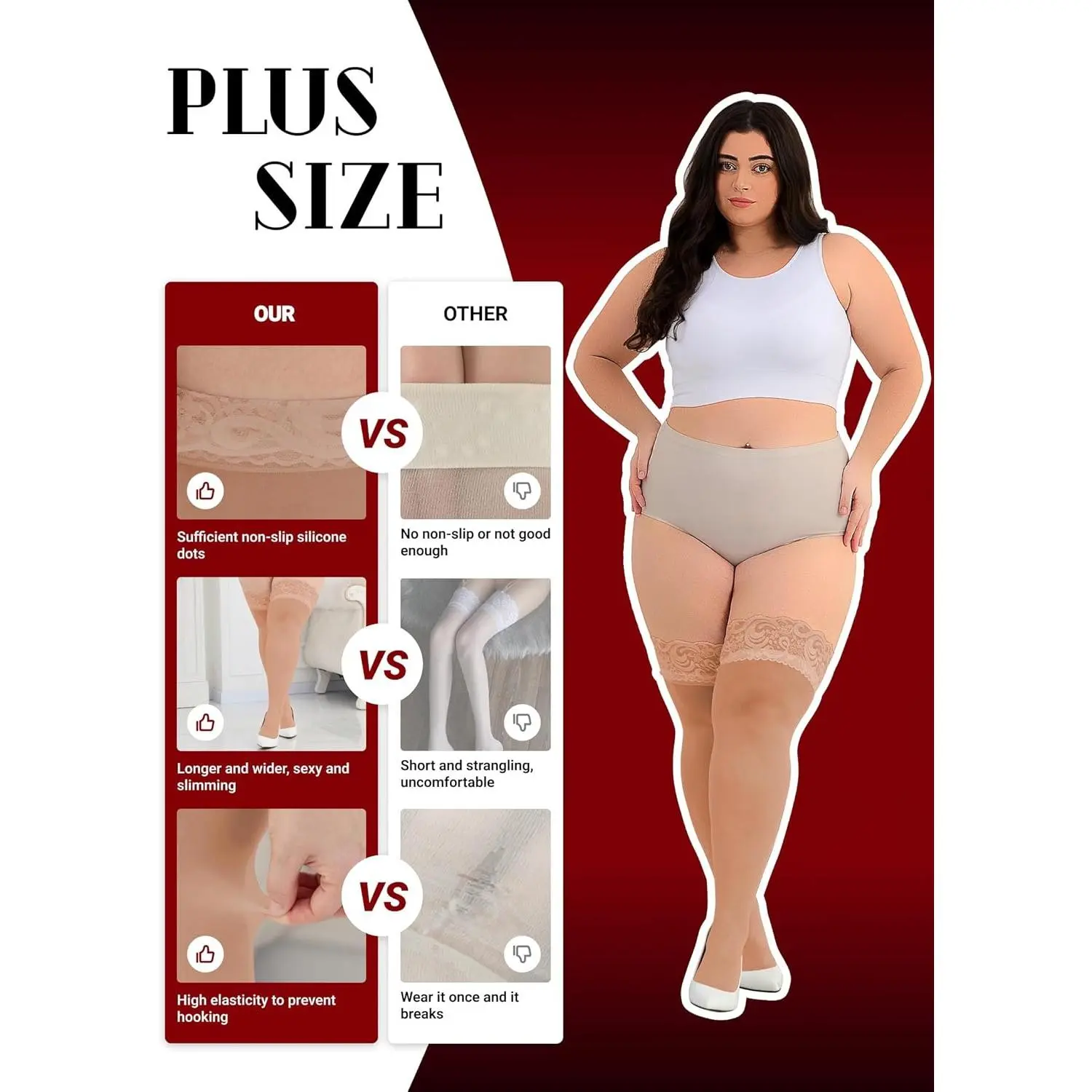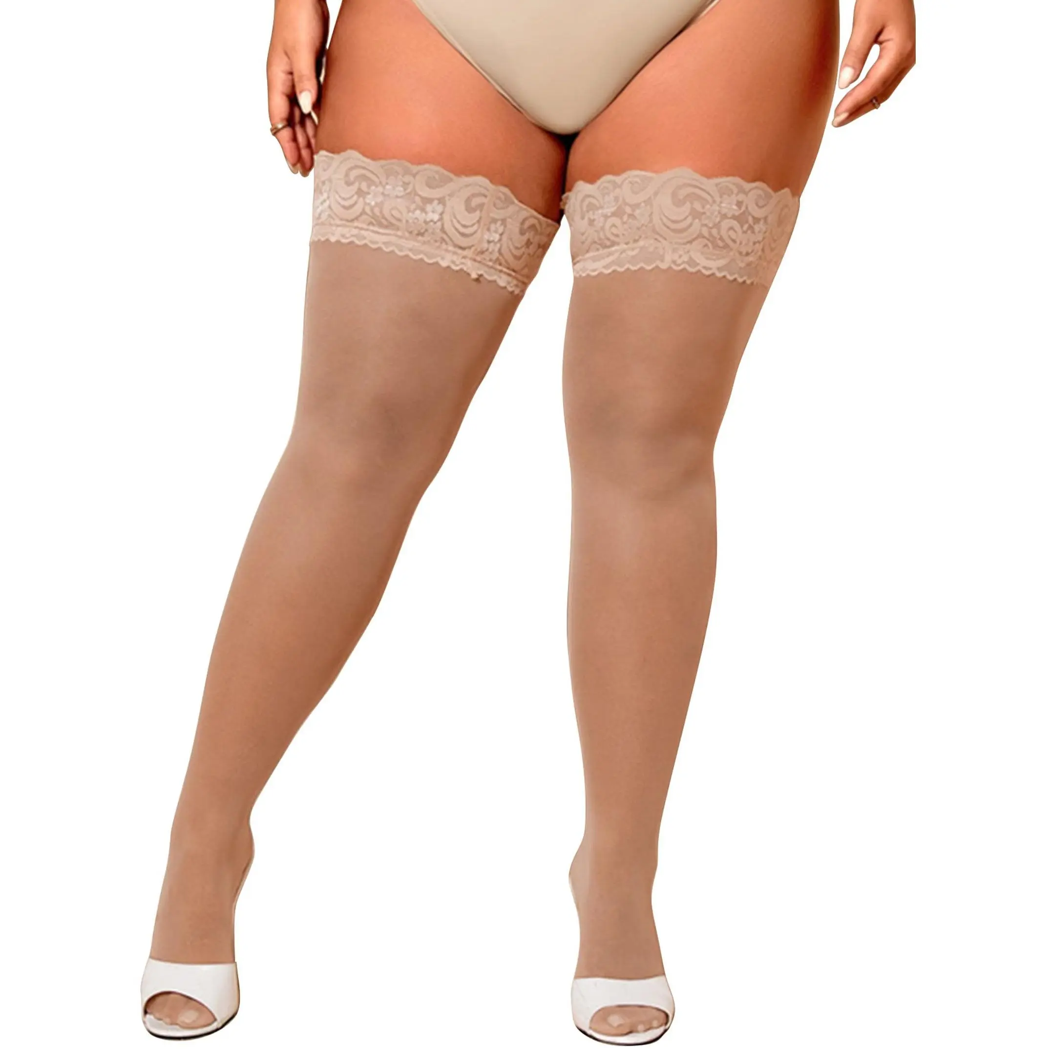 Pl Size Thigh High Stockings: Women Lace Anti-Slip Stay Up Sheer Pantyhose Lingerie Stockings for Sexy Women