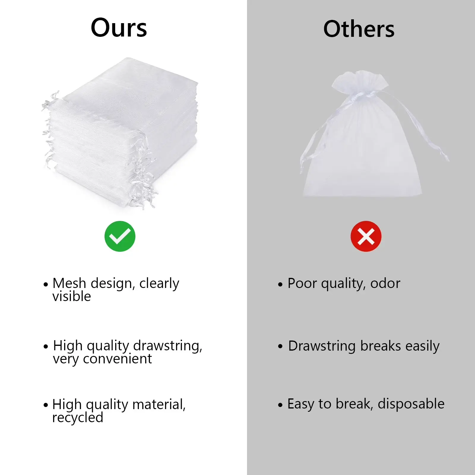 ·Ample Quantity: The package includes 100 white organza bags, ensuring you have plenty for all your event or gift-giving needs.