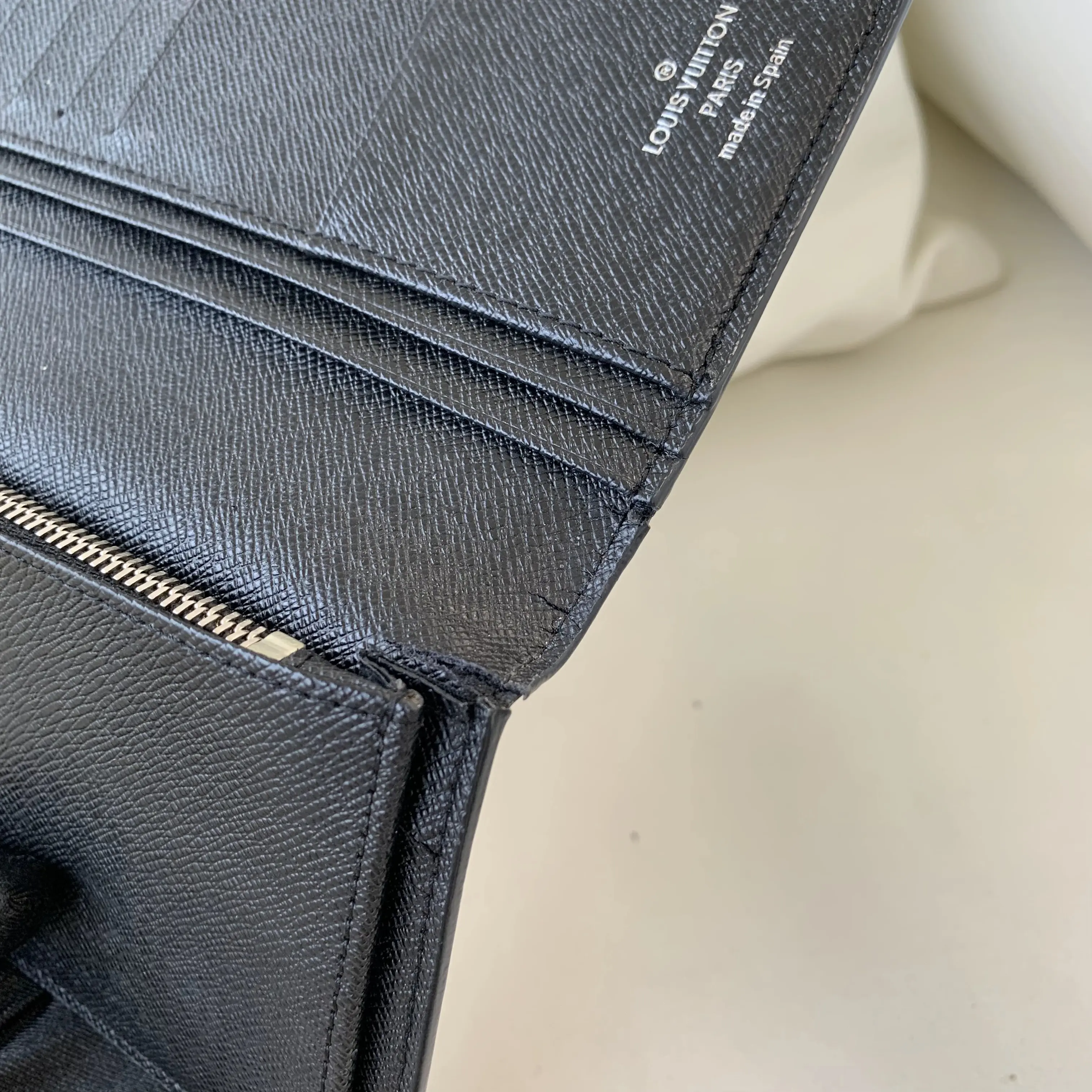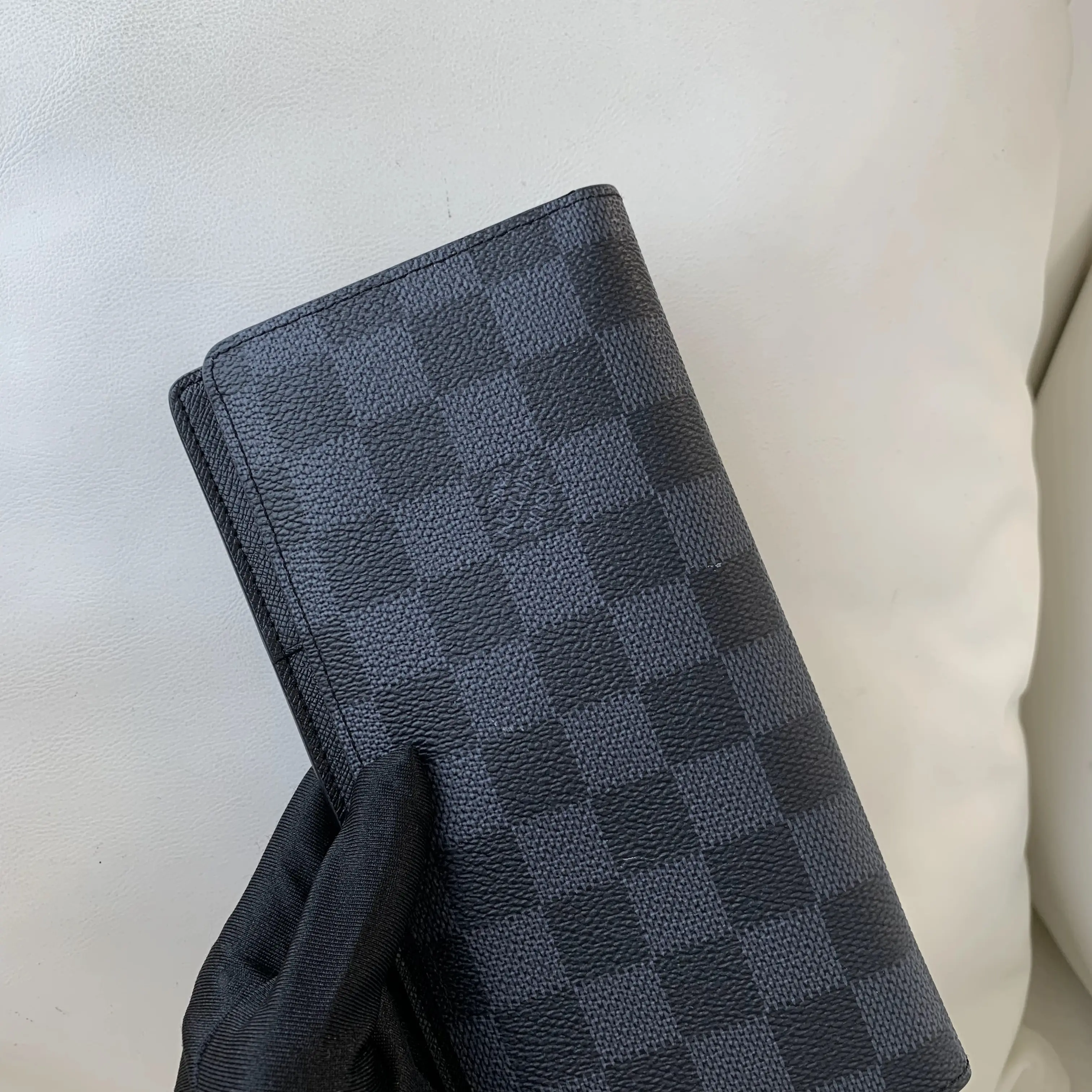 100% Authentic Louis Vuitton Brazza long wallet, crafted from iconic Damier Graphite coated canvas with premium black leather interior.