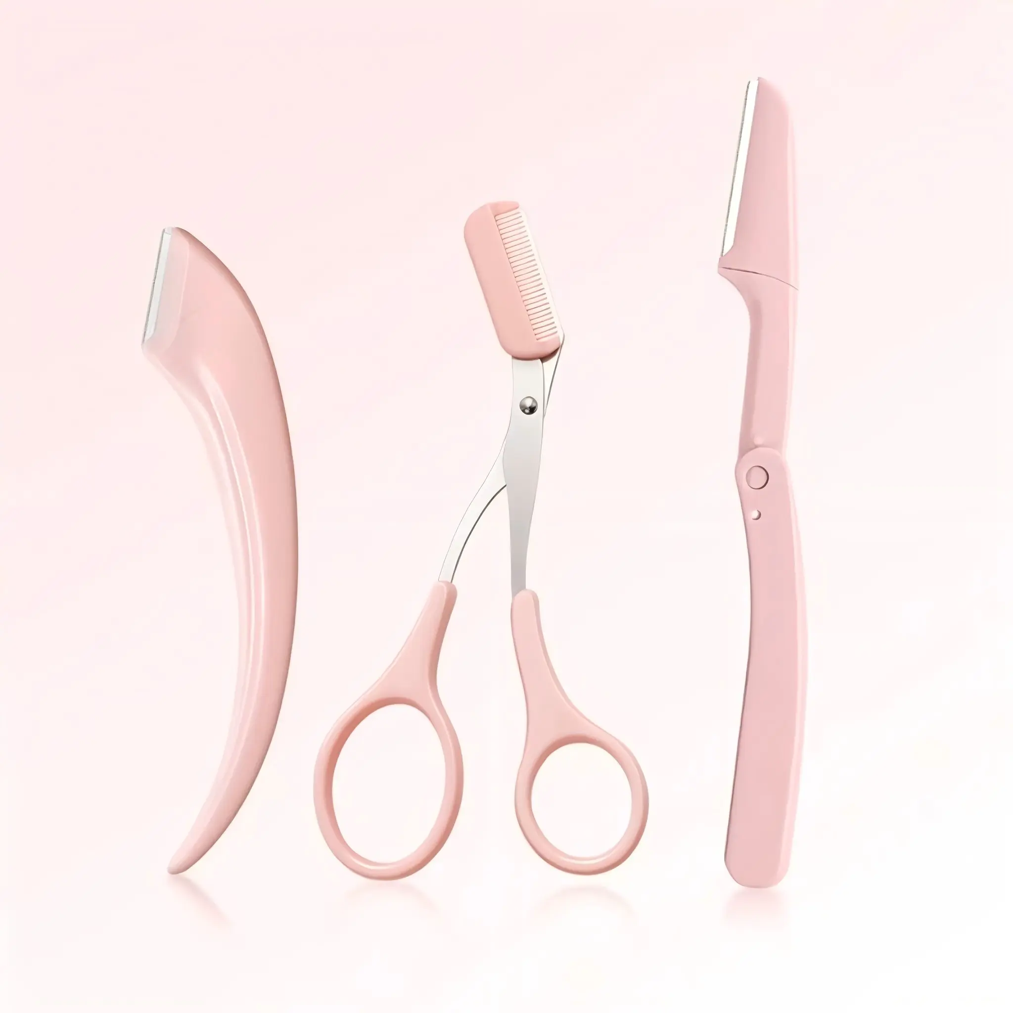Eyebrow Scissors Set, 3-piece set eyebrow trimmer, eyebrow shaping tool, eyebrow products for women and girls, portable eye makeup tools for home and travel