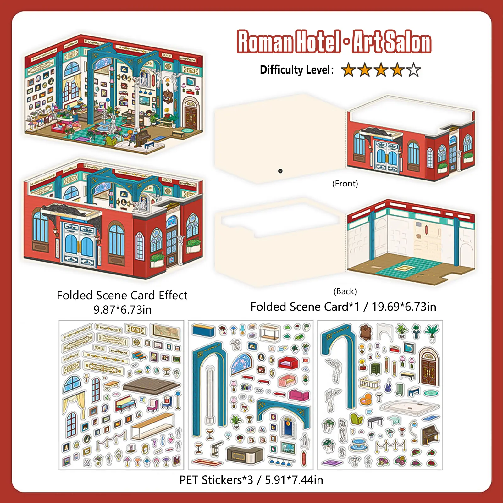 Roman Hotel Series – 3D Foldable Scene Sticker Kit,DIY Buildable Diorama for Room Decor & Display,Vintage Architectural Gift for Craft Lovers & Collectors,PET Sticker Set