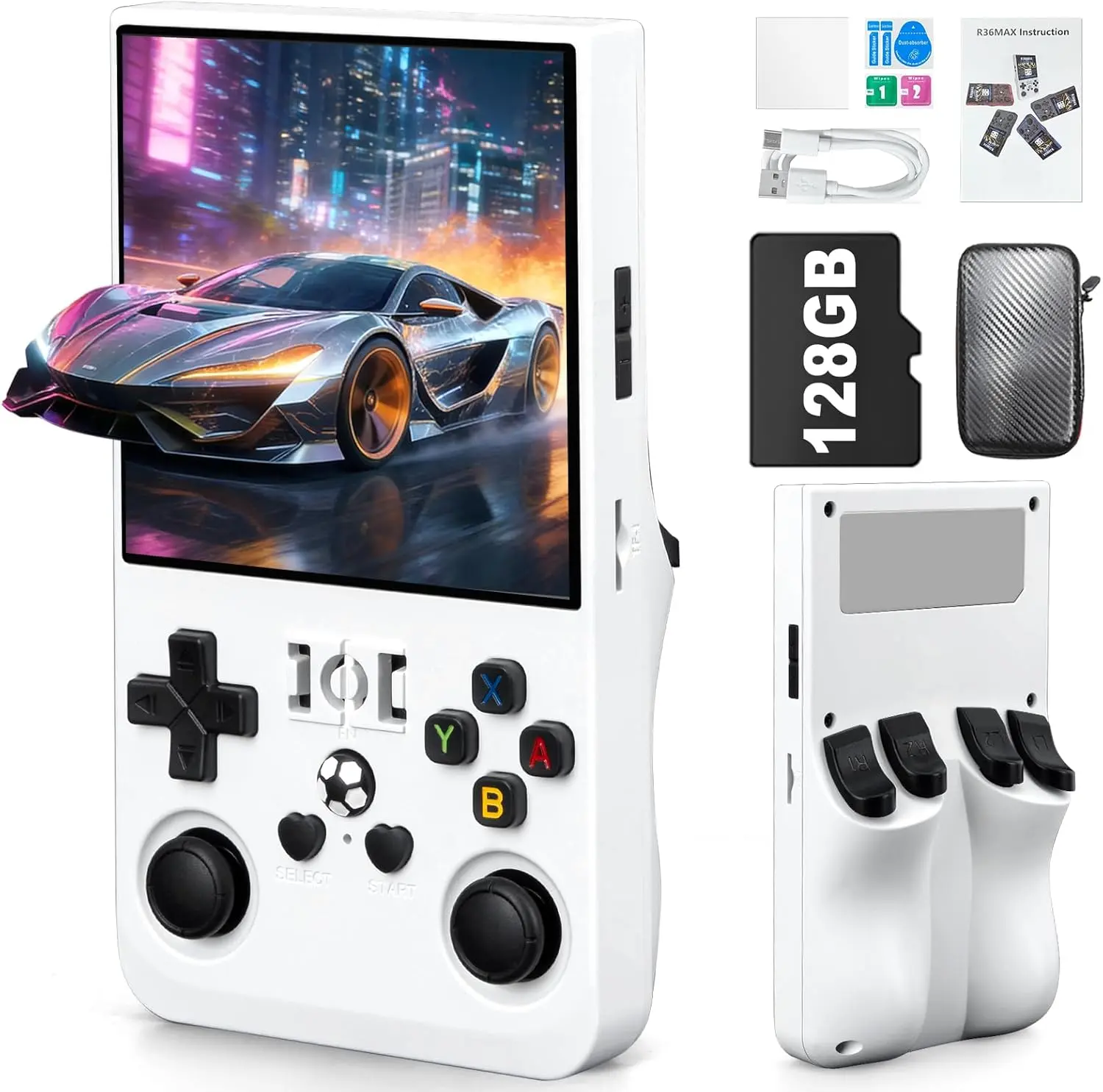 ·Pocket-Size Power, All-Day Nostalgia:The R36MAX handheld game console compresses the classic memories into compact and portable segments. It is lightweight and compact, and can be easily tucked into a pocket or backpack. It is also equipped with a 4000mAh battery, which can provide long-lasting power and keep you company all the time. When queuing up or taking a break, you can take it out and play at any time, allowing the classics to be relived and nostalgia to be unrestricted