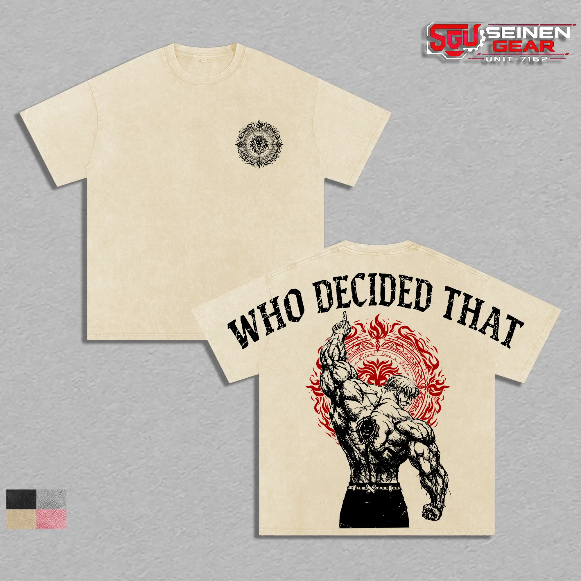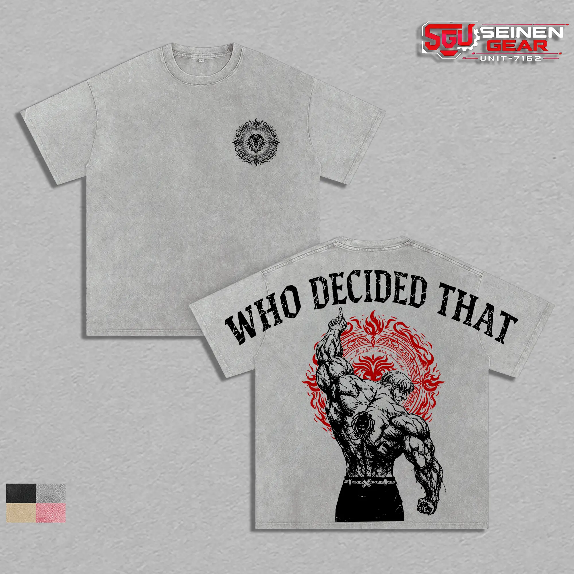 Escanor The One “Who Decided That” Vintage Washed Oversized T-Shirt, Seven Deadly Sins Anime Graphic Tee, Trendy Streetwear Men’s T Shirts Summer Clothes Gifts for Him