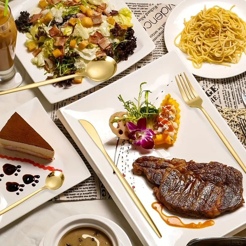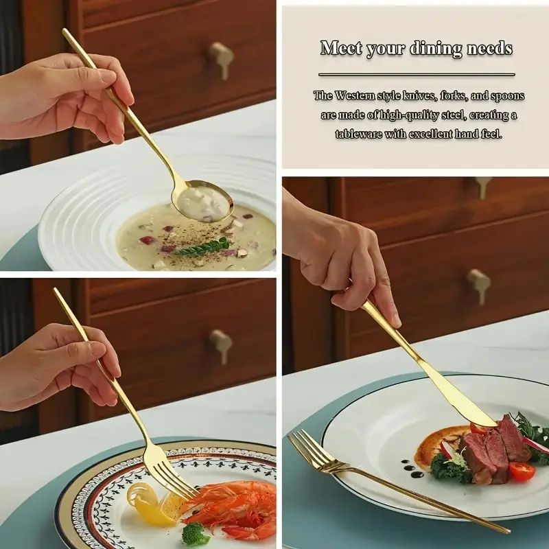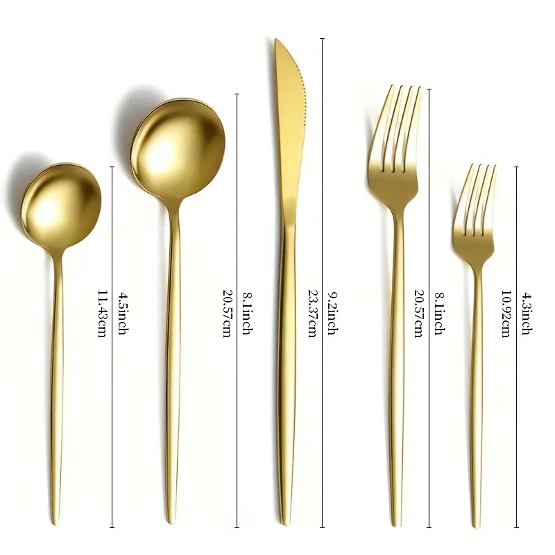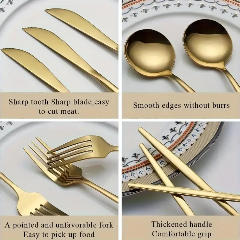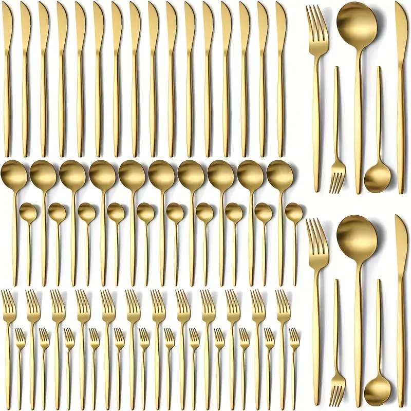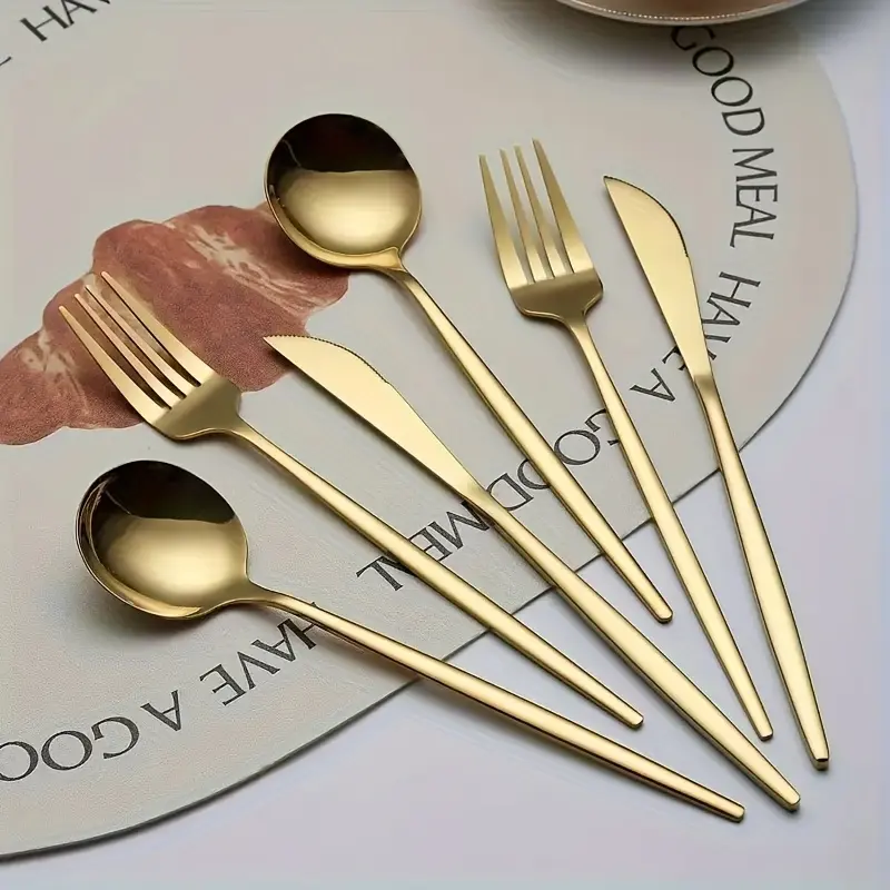 Mirror Polished 30pcs Stainless Steel Cutlery Set, Including Steak Knife, Fork, Spoon And Teaspoon, Dinner Fork, Dinner Spoon, Fruit Fork, Dessert Spoon, Coffee Spoon, Suitable For Family Restaurants, Hotels, Parties, Weddings, Copper Cutlery Set