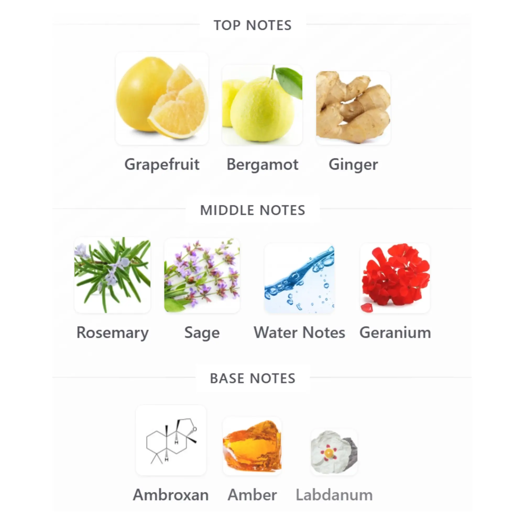 • Heart: Rosemary, Sage, Water Notes, Geranium