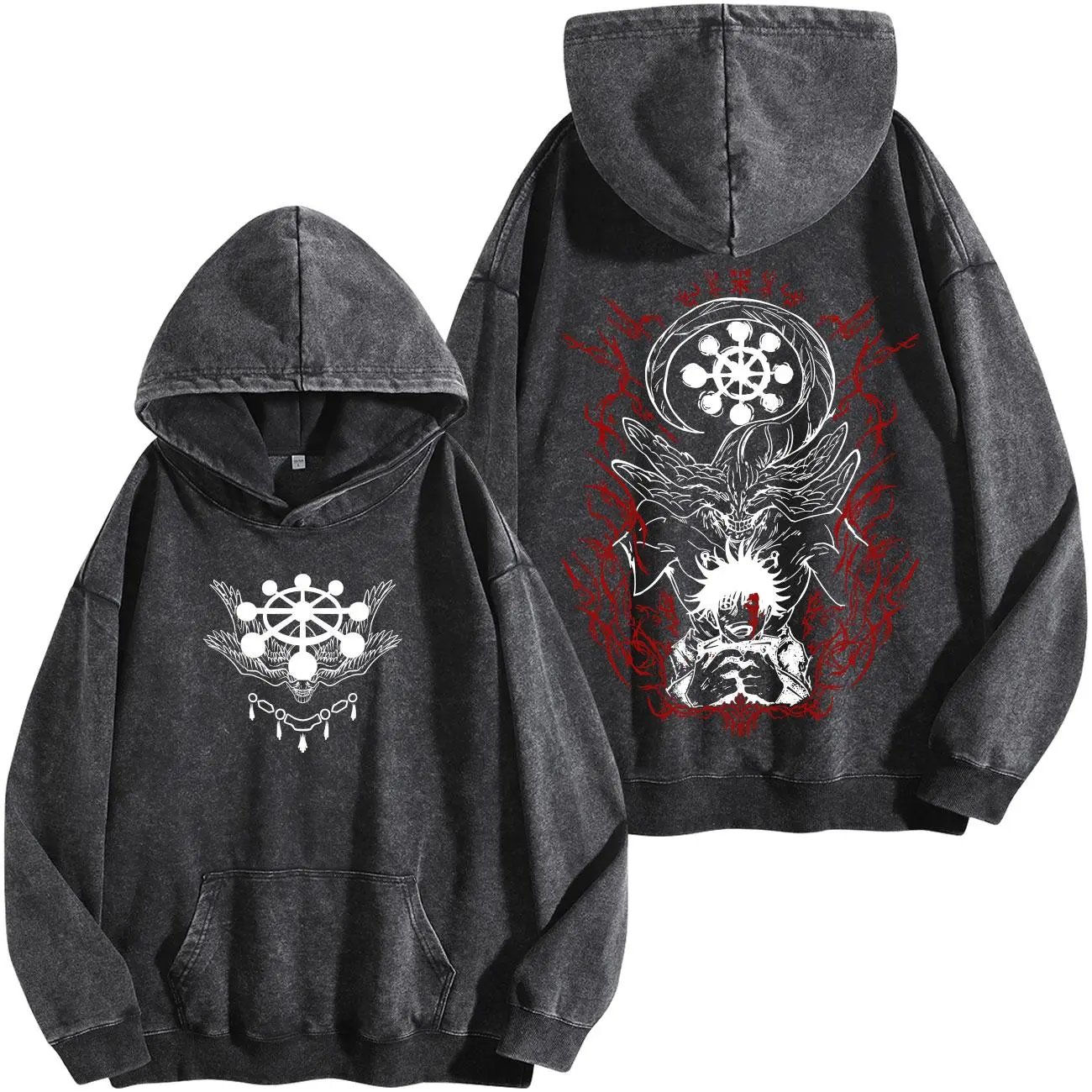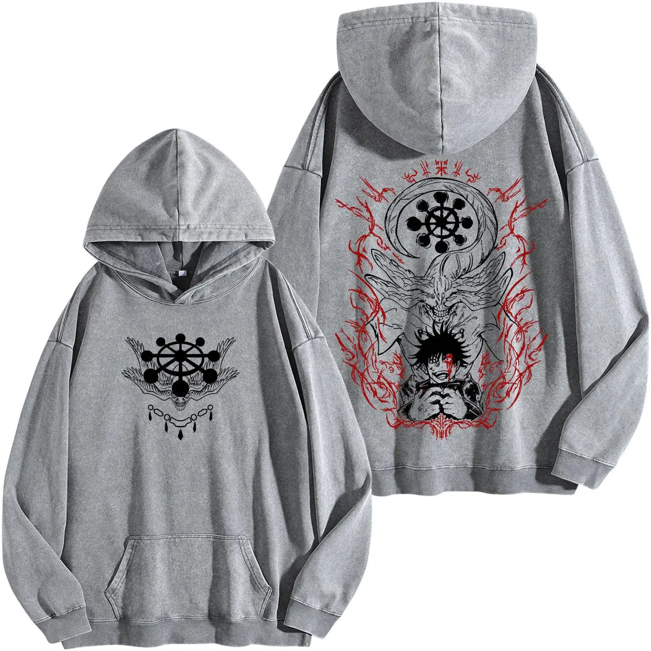 Megumi Fushiguro Mahoraga Washed Hoodie Vintage T Shirt Menswear Heavy Cotton Top Jujutsu Kaisen Anime Manga